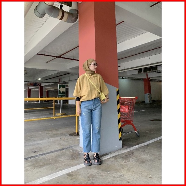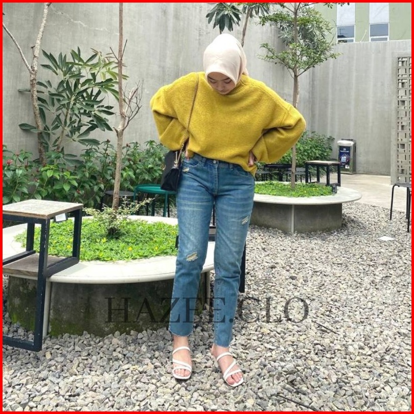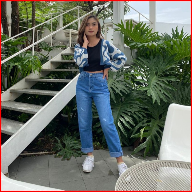 Celana Jeans Wanita Boyfriend Nissa Sobek Tidak Tembus Kulot Jeans Cewek Mom Jeans