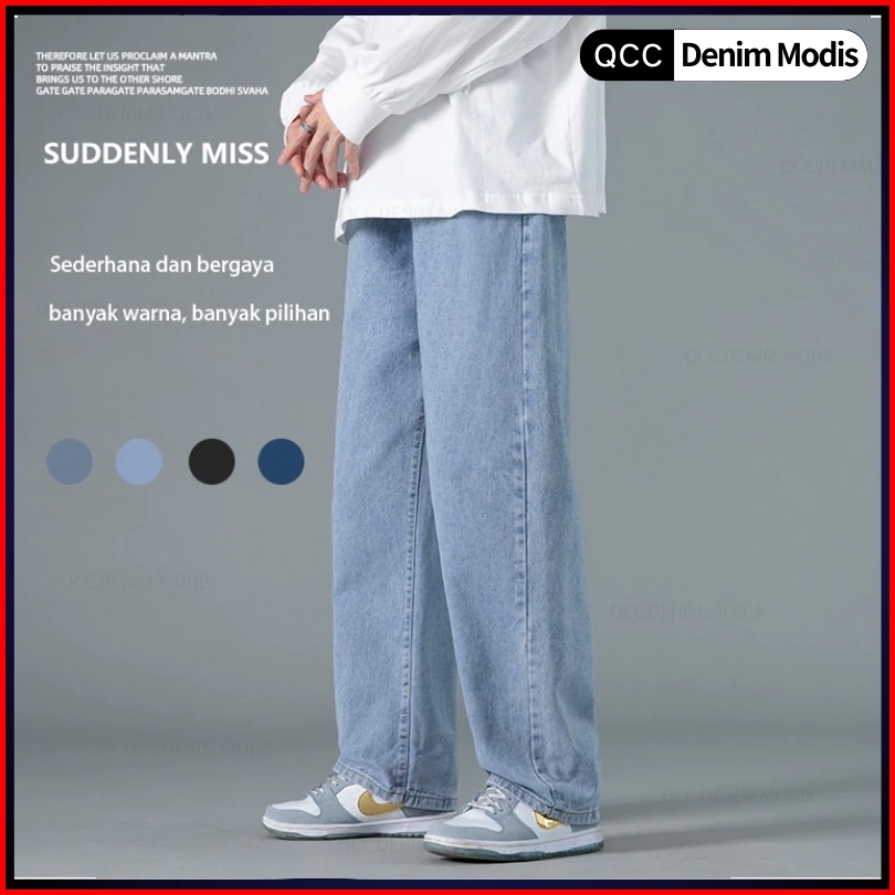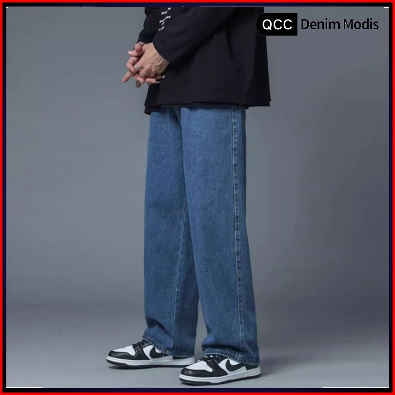 Celana Jeans Pria Loose Pants Baggy Korean Style Basic Reguler Fit Celana Jeans Gombrang Oversize