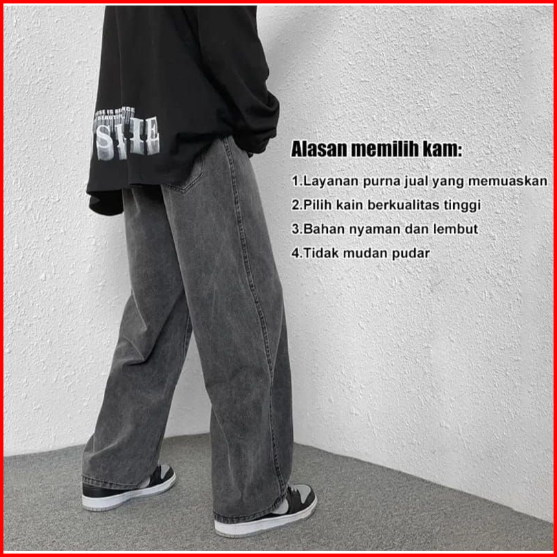 Celana Panjang Jeans Pria Loose Korea Style Gombrong Baggy Skena Original