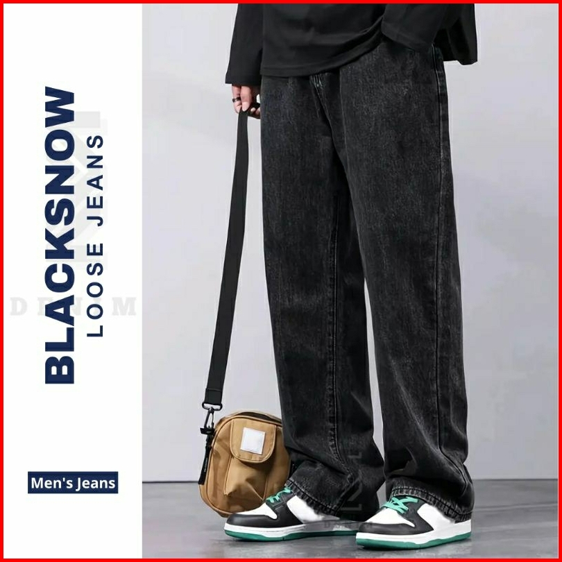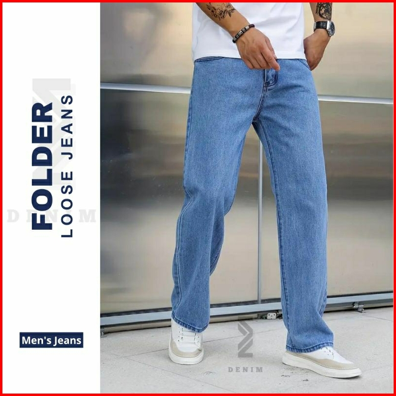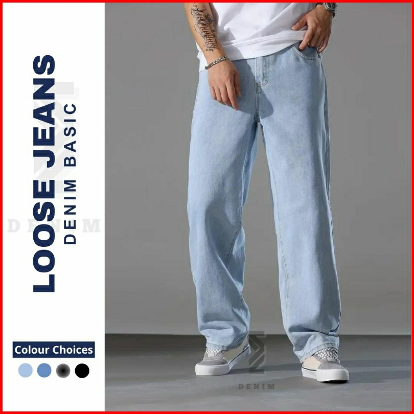 Celana Jeans Pria Loose Pants Panjang Korean Style - Exroct69denim Loose Jeans Pria Biru Muda