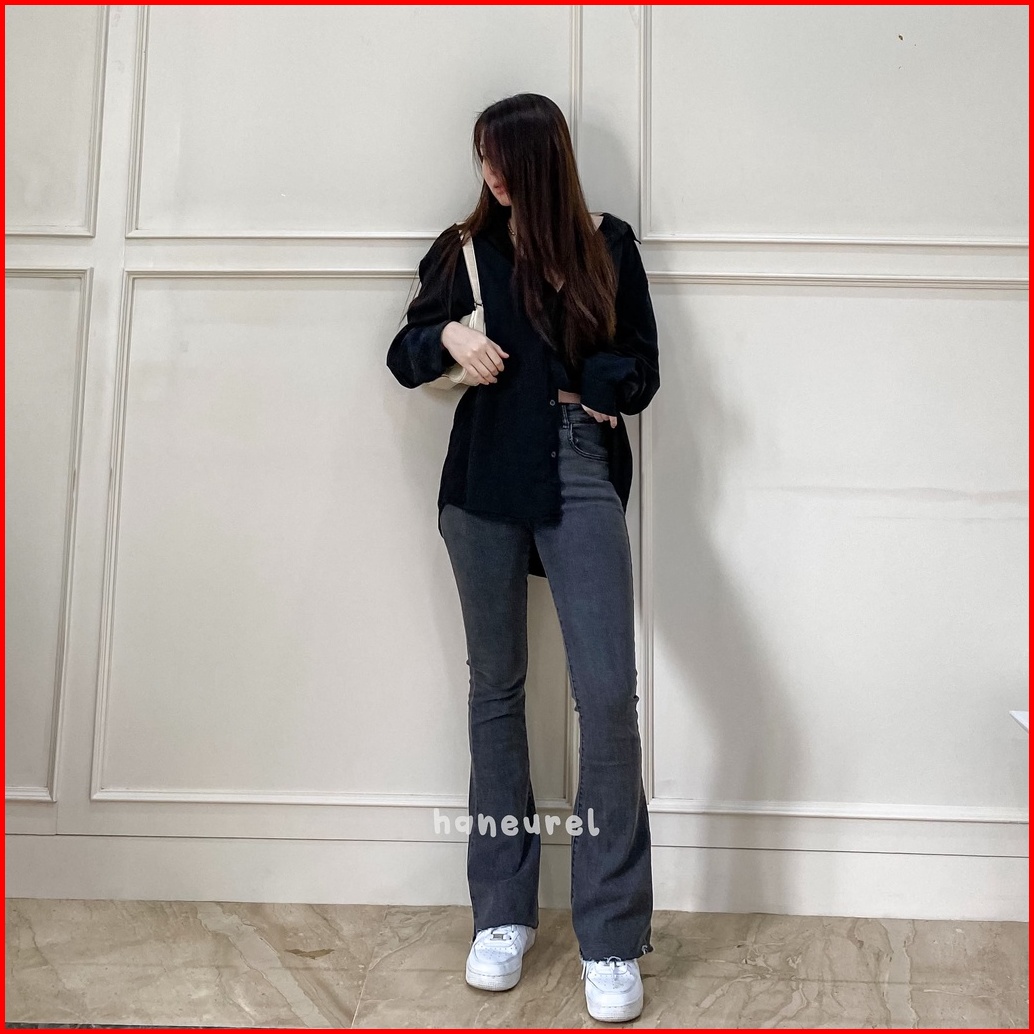 Yeoni Jeans In Washed Black - Celana Panjang Cutbray Jeans Wanita Korean Looks Xs - Xxl