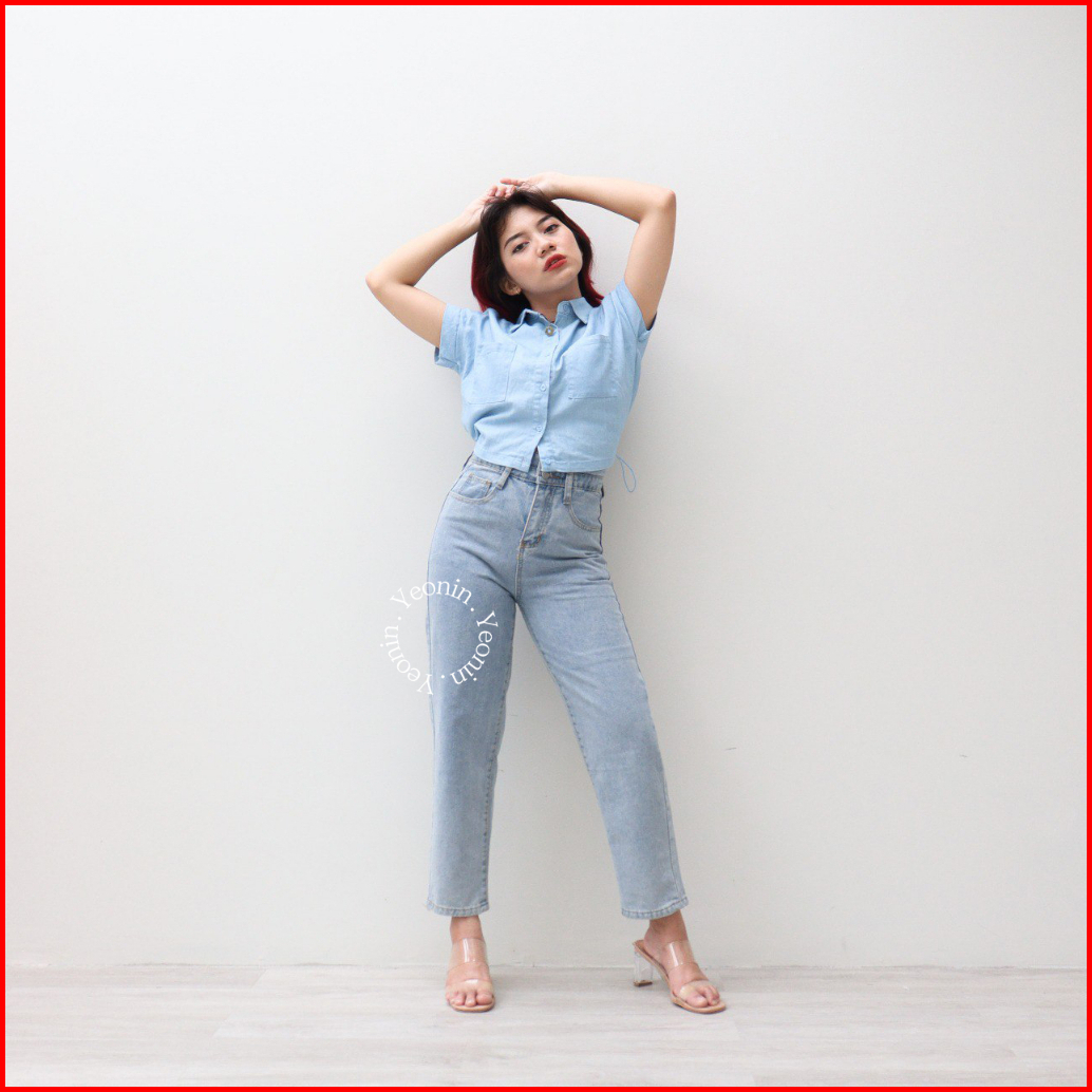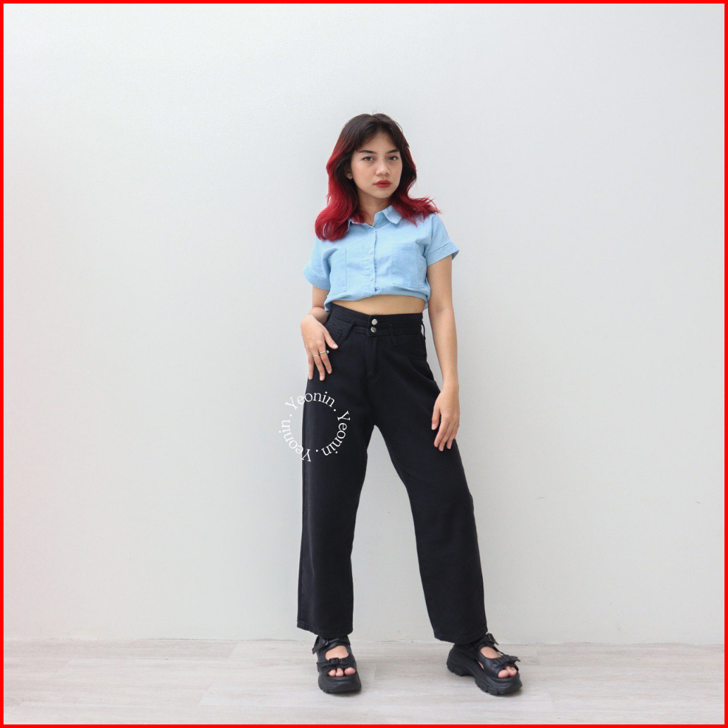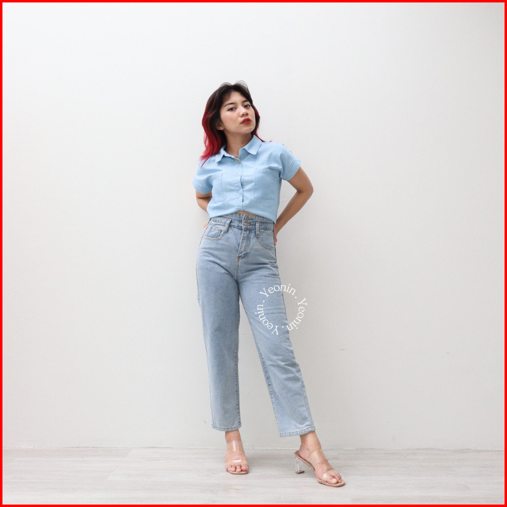 Yeonin.id Celana Panjang Bawahan Cewek Highwaist Korean Jeans Wanita Kekinian X25