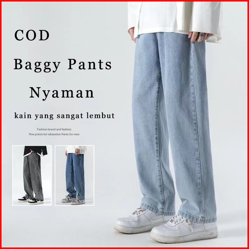 Terlaris Celana Jeans Pria Model Gombrong Korean Style Oversize Loose Pants Jeans Pria Cowok Denim