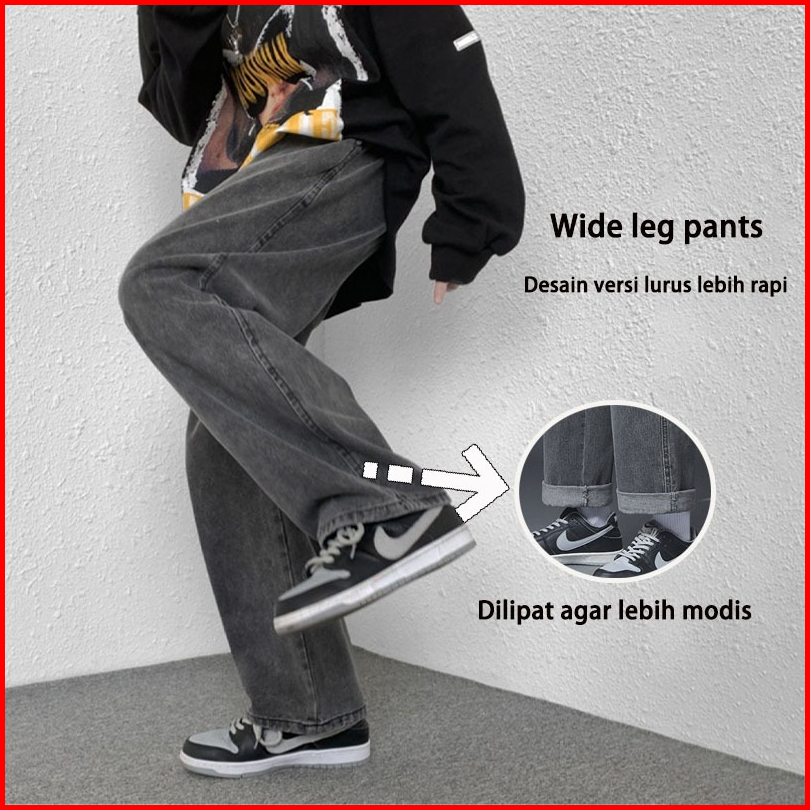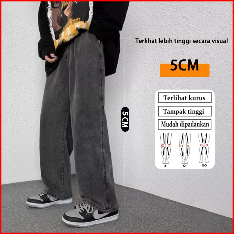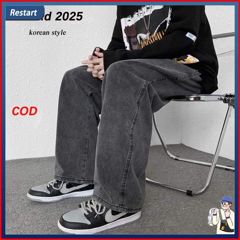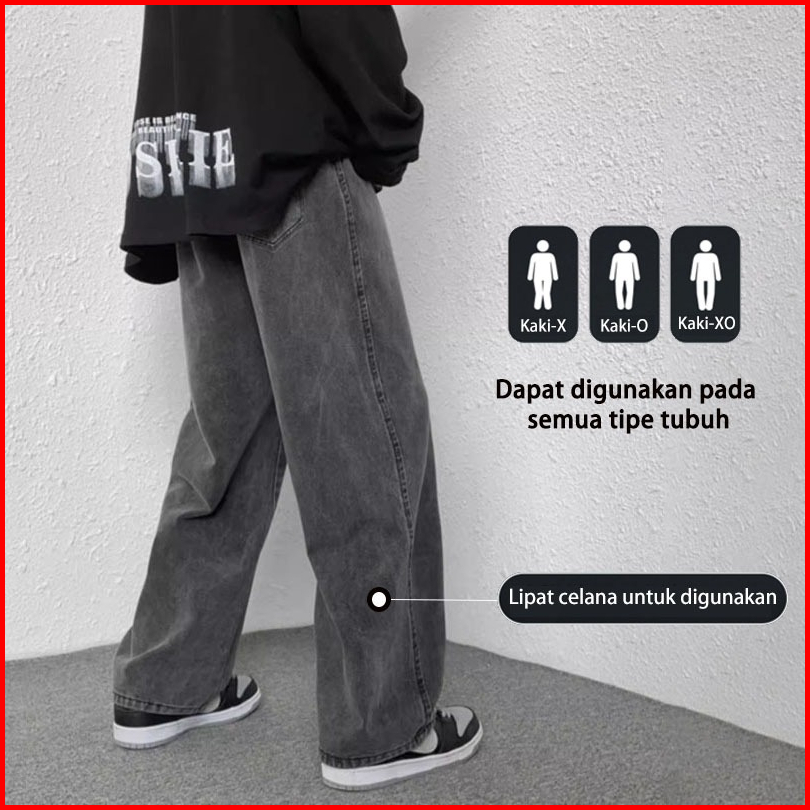 Celana Jeans Pria Korean Style Celana Panjang Hitam Loose Jeans Celana Kulot Pria Baggy Pants Boyfriend Jeans 2025