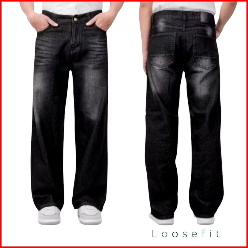 Celana Panjang Jeans Baggy Pants Gombrong Loosefit Wide Leg Korean Style Skena Pria Dan Wanita Dewasa Unisex