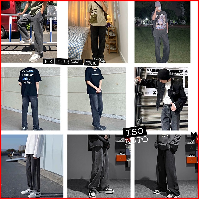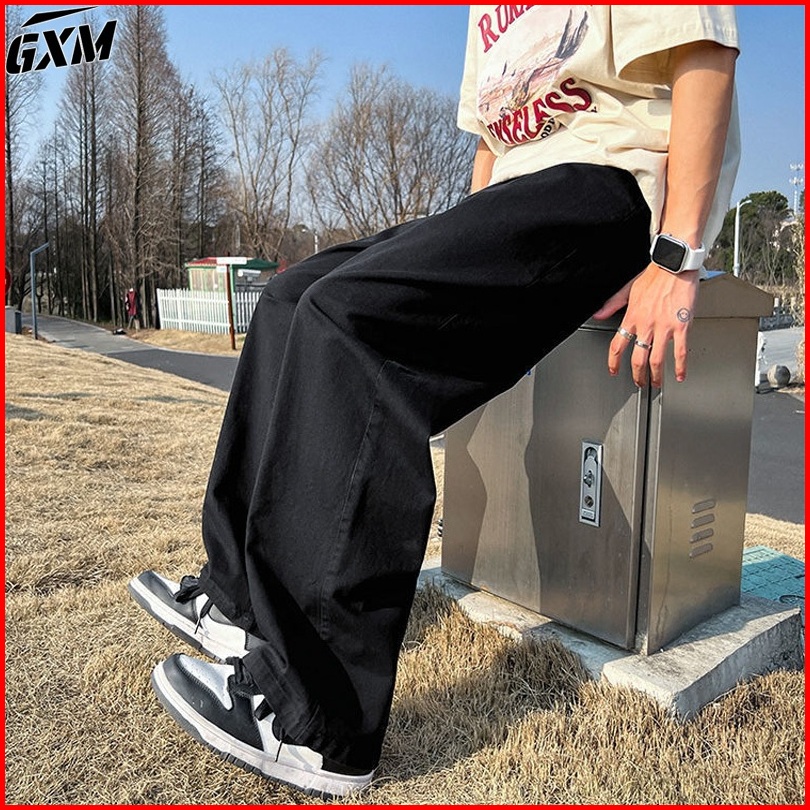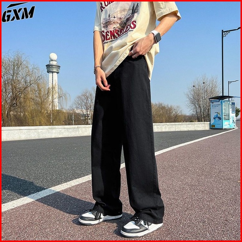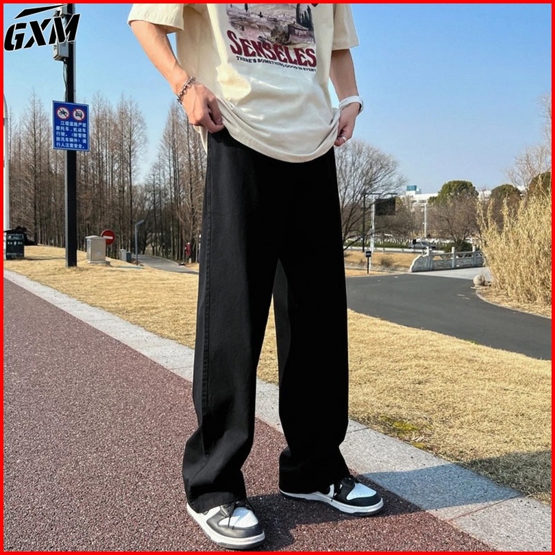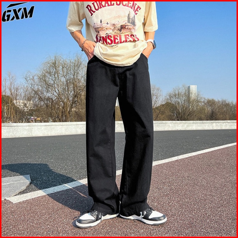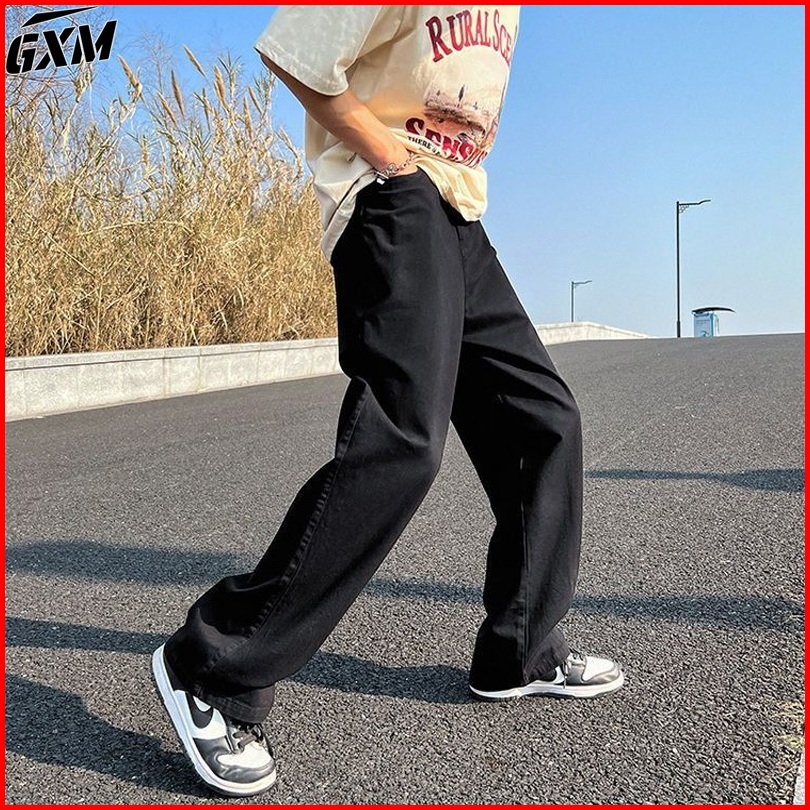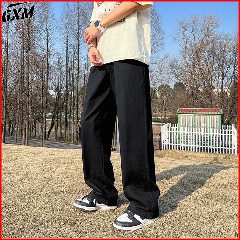 Celana Jeans Hitam Kulot Pria Celana Jeans Cowok Jeans Pria Loose Straight Korean Style Oversize Longgar Jens Kain Tebal