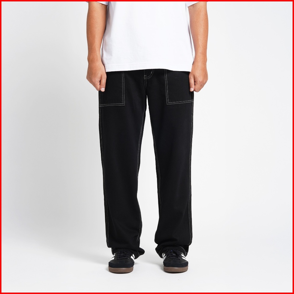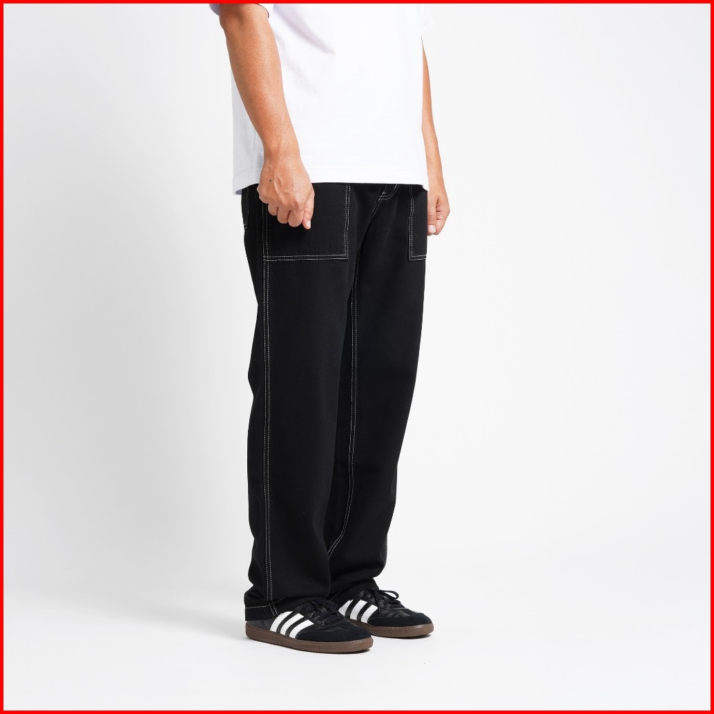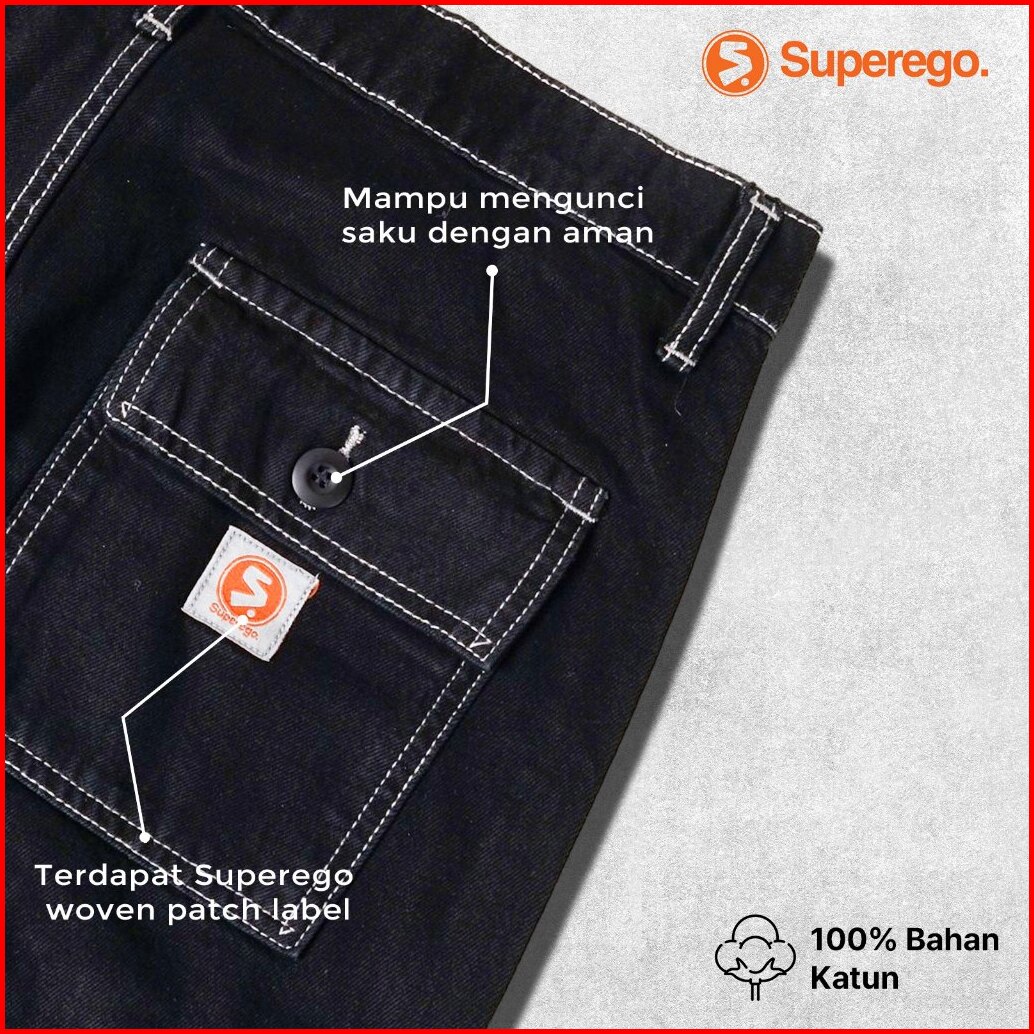 Superego Celana Jeans Pria Size 28-38 Loose Fit Fatigue Long Pants Denim Solid Black Sfp01f