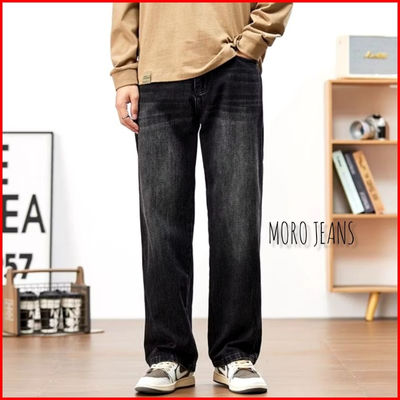 Celana Jeans Pria Baggy Pants Korean Style Oversize Loose Blue And Black Snow Jeans Straight Kulot Panjang Pria