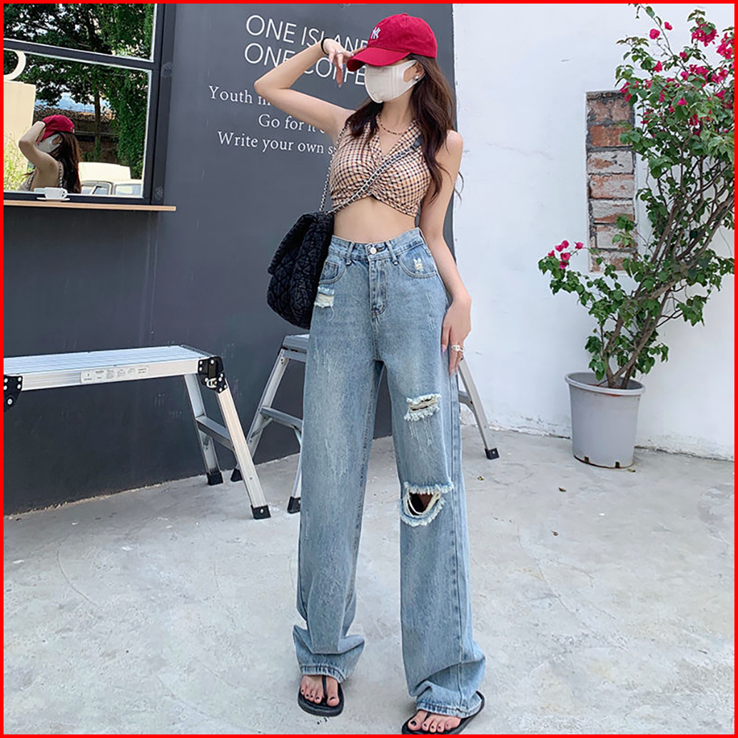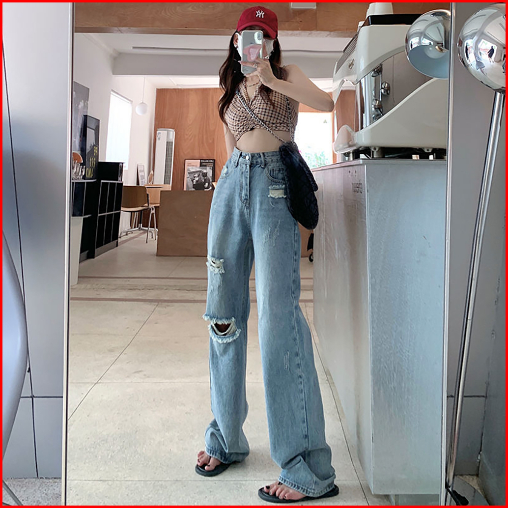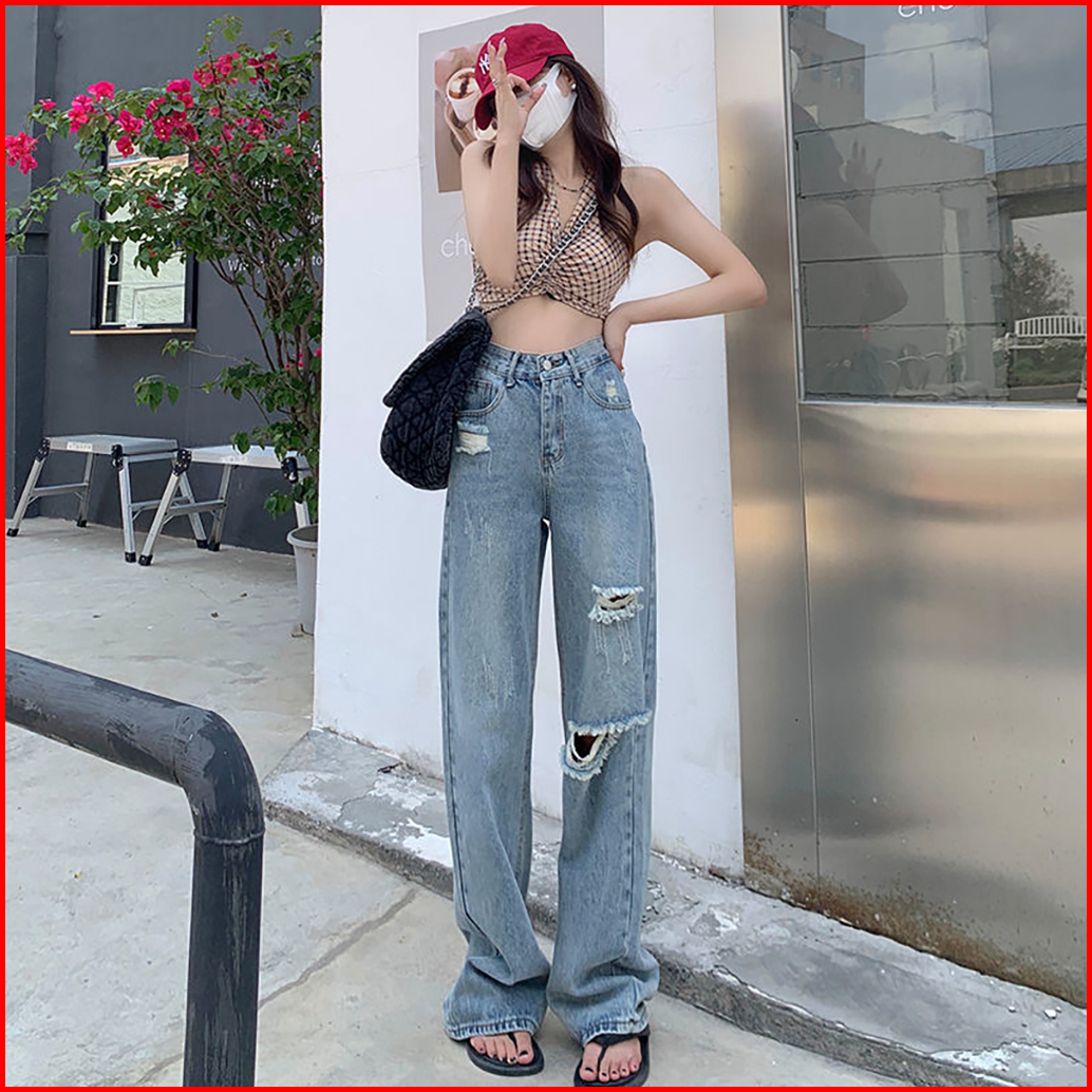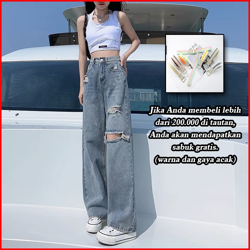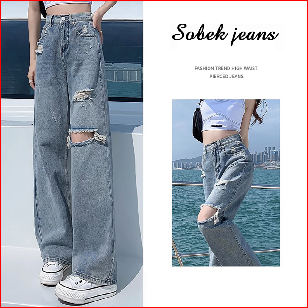 Kekinian Factory Ready Stok Celana Jeans Panjang Wanita Sobek Baggy Pants Korean Style Celana Denim Dewasa Cewek Casual