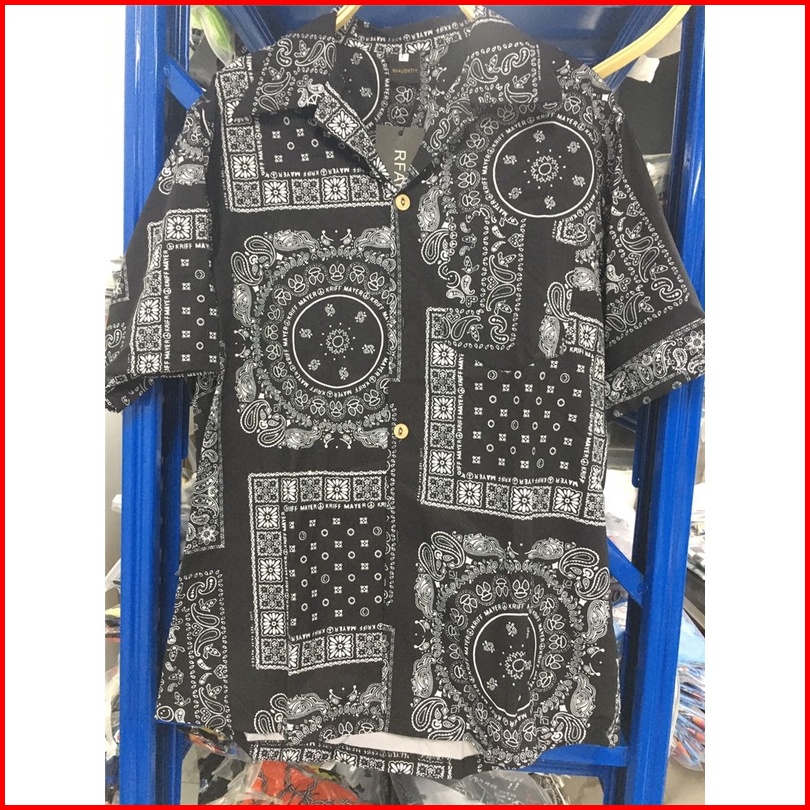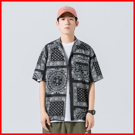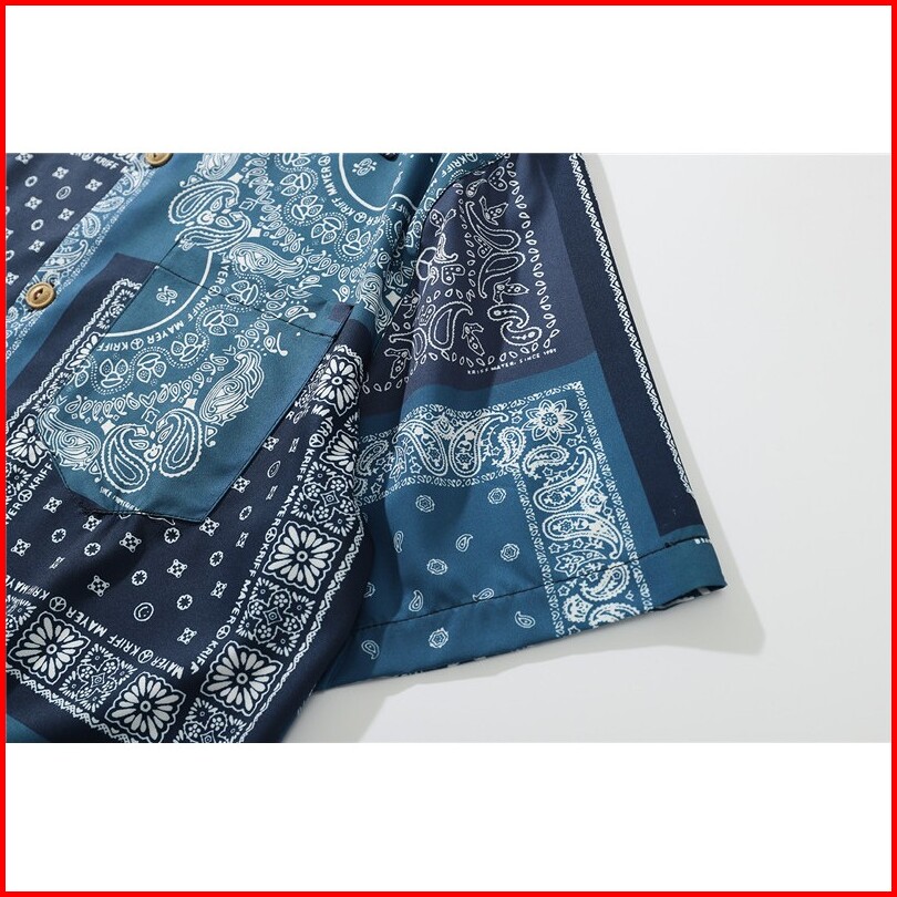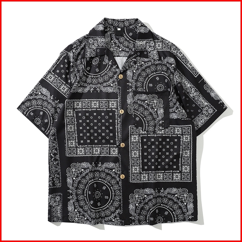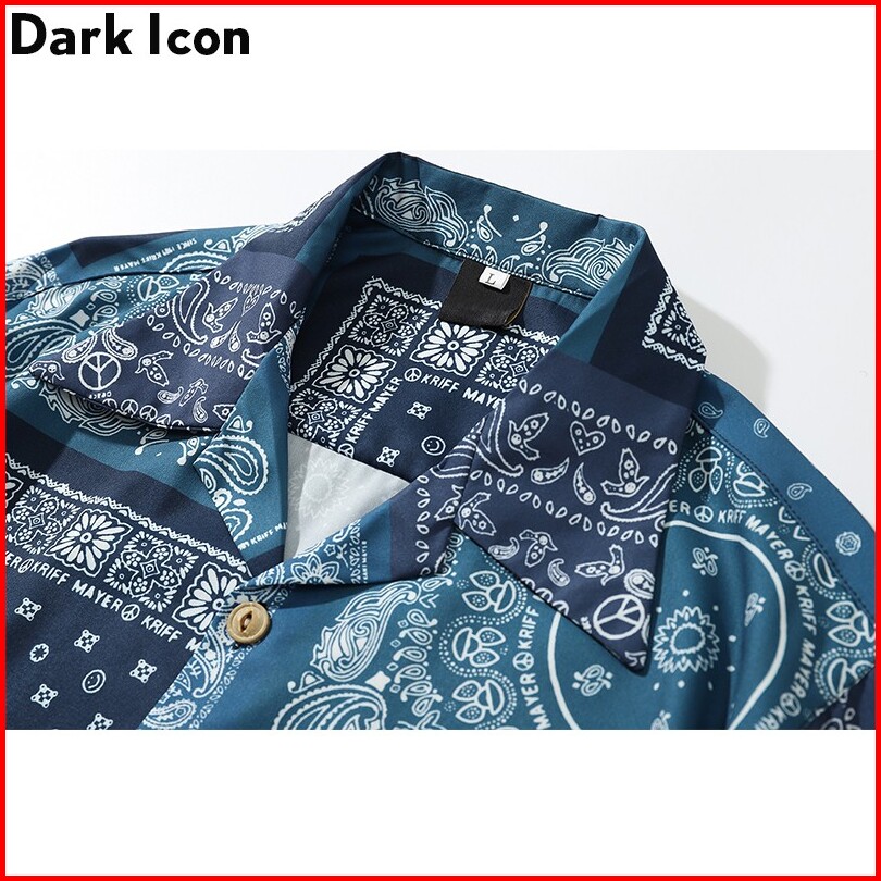 Dark Icon Kemeja Bandana Pria Shirt Short Sleeve Vintage Motif Print Shirt Summer Paisley Hawaiian Shirt
