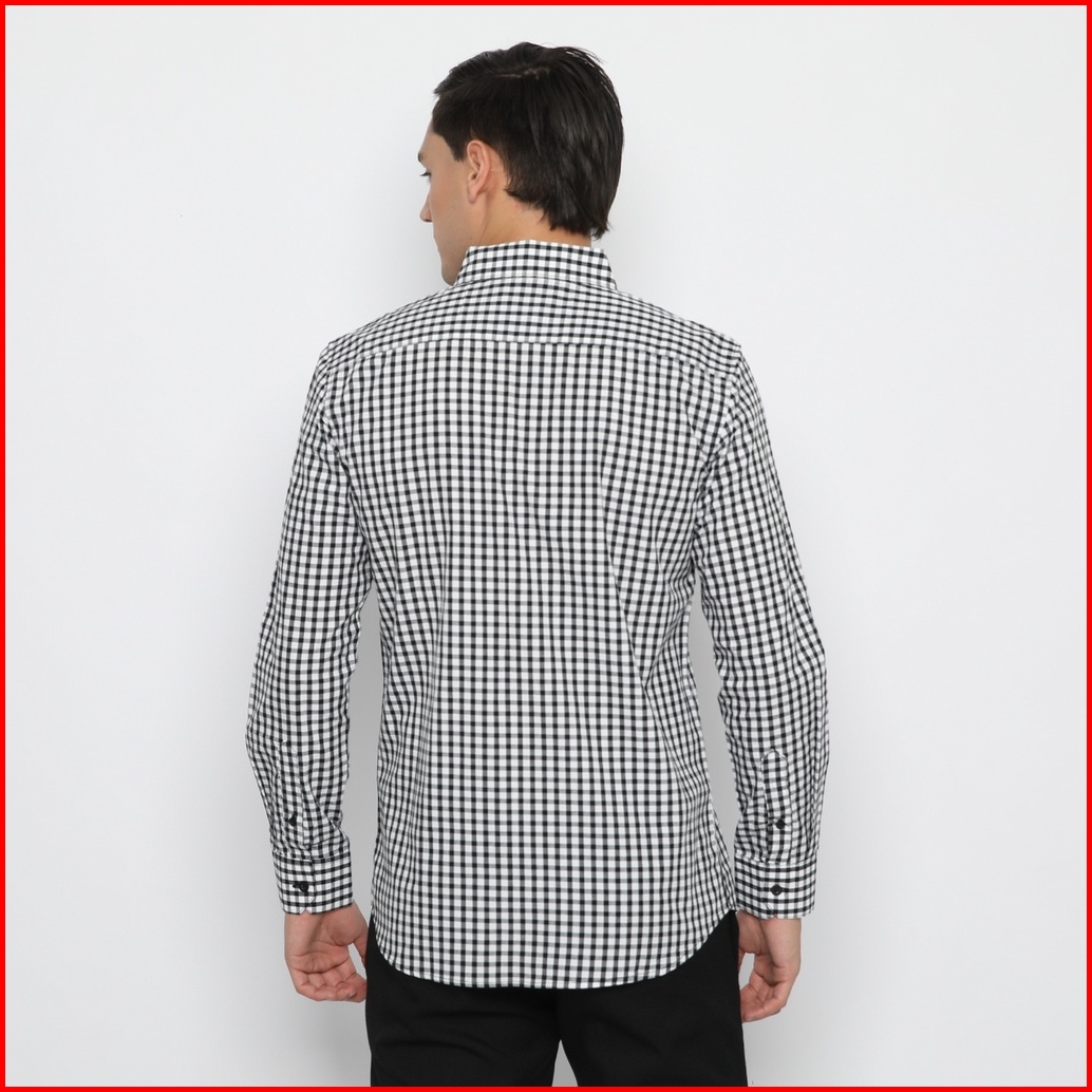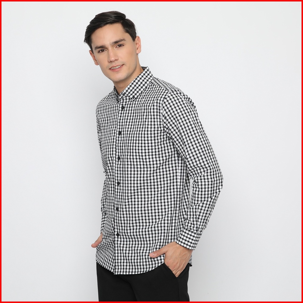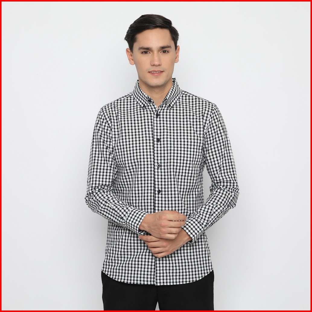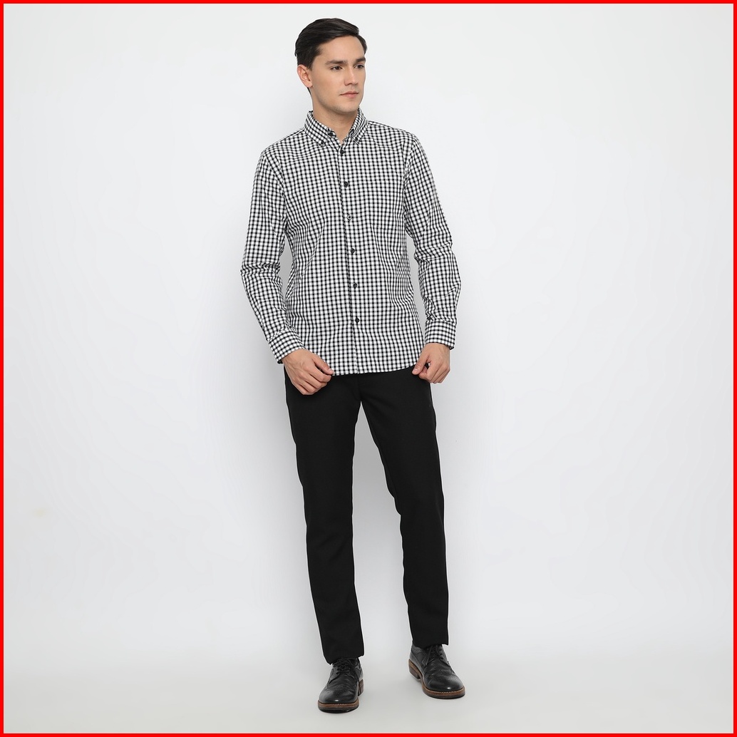 Platini Kemeja Kotak Pria Lengan Panjang Katun Yarndyed Dobby 76297 Hitam