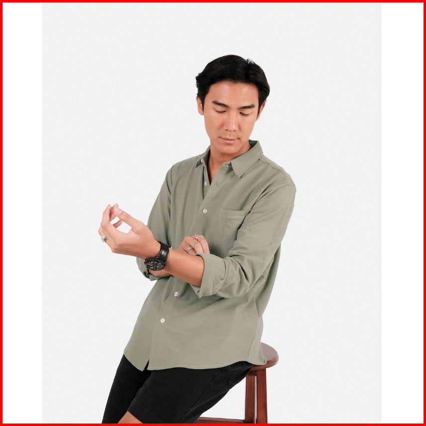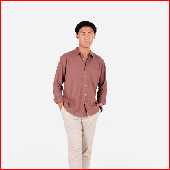 Cottongo Kemeja Polos Brown Cokelat Tua Cotton Pique Lengan Panjang