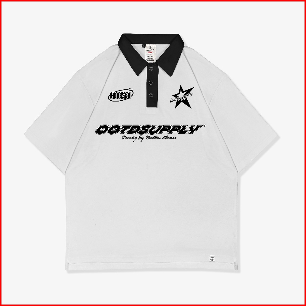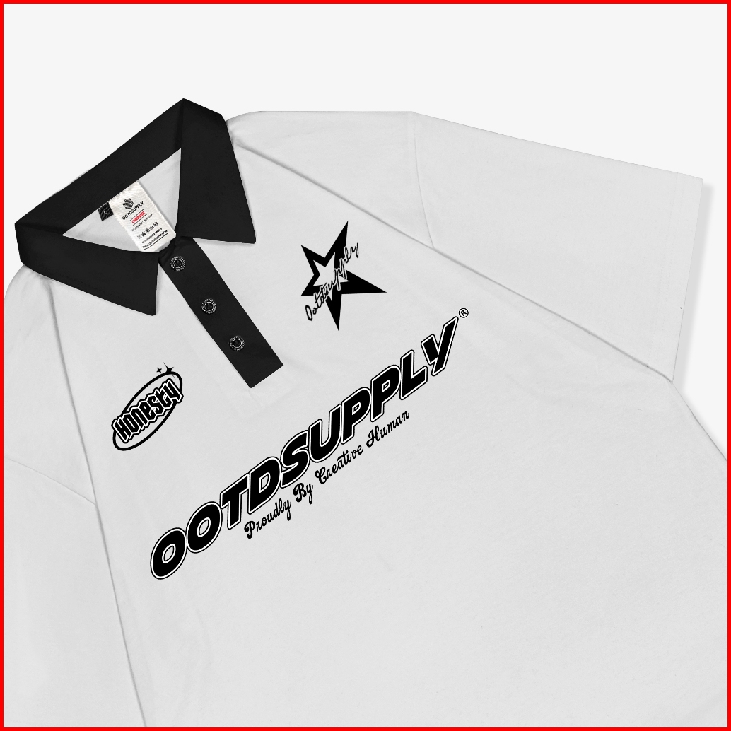 Ootdsupply Oversize Polo Shirt Honesty White With Black Collar L Kaos Polo Pria Dan Wanita Ovz-ps012