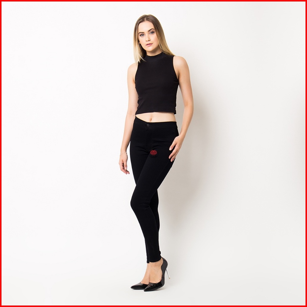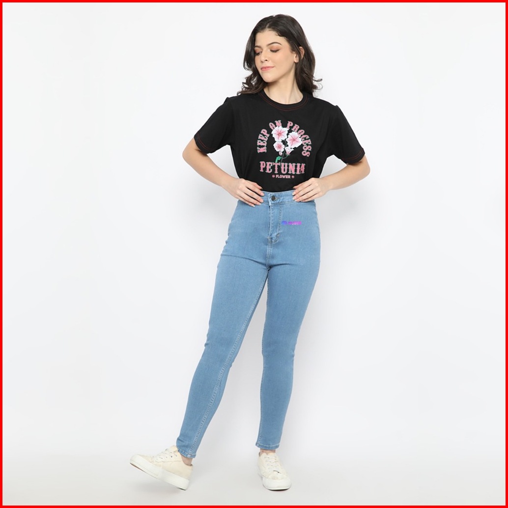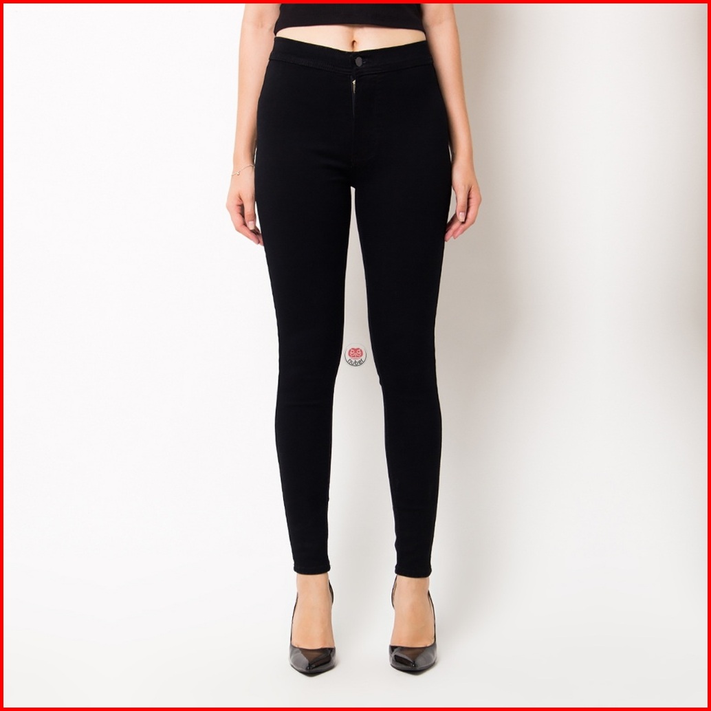 Nuber Skinny High Waist Celana Panjang Soft Jeans Petunia Hitam Black Navy Blue Cream Ivory