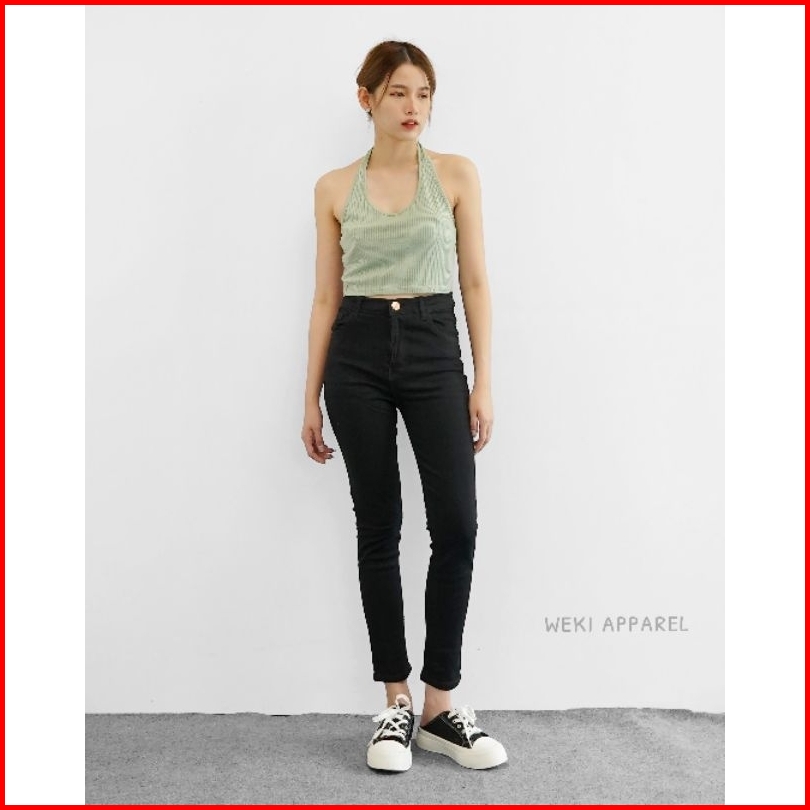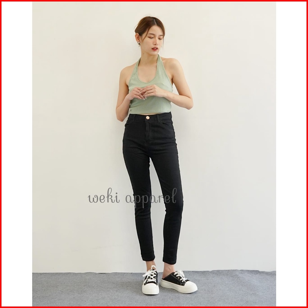 Weki - Celana Jeans Hw Skinny Strech Black Ada Lubang Belt