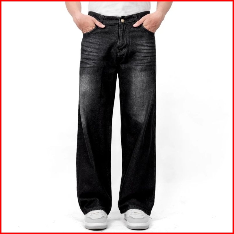Celana Jeans Pria Korean Style Baggy Pants Panjang Straight Loose White Regulerfit 13 Oz Jeans Denim