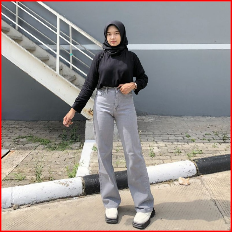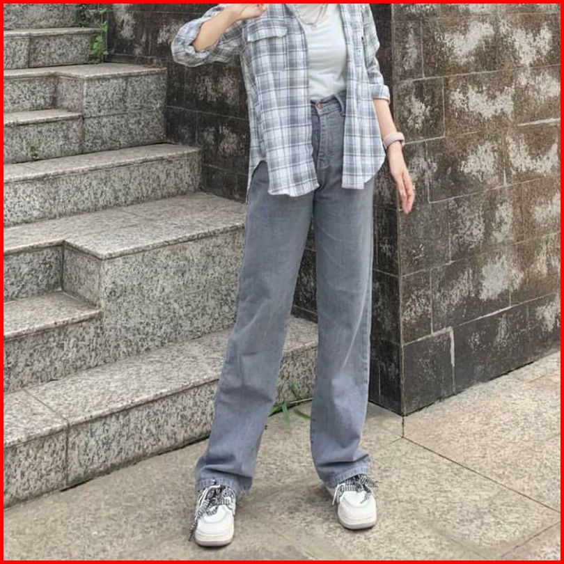 Awsme - Loose Abu Grey Jeans Celana Highwaist Loose Jeans Hw Loose Jeans Wanita Korean Haigh Waist Jeans Polos Basic