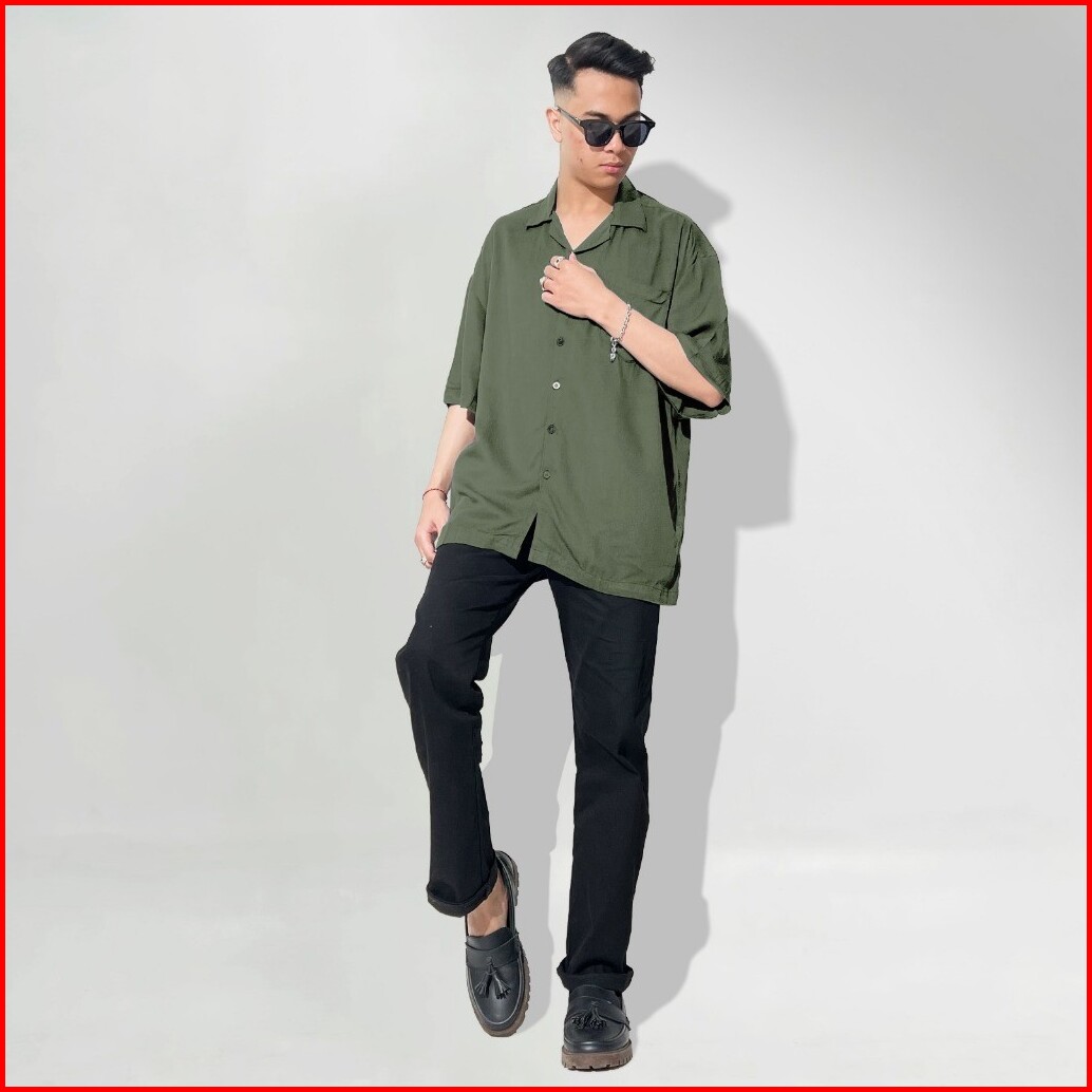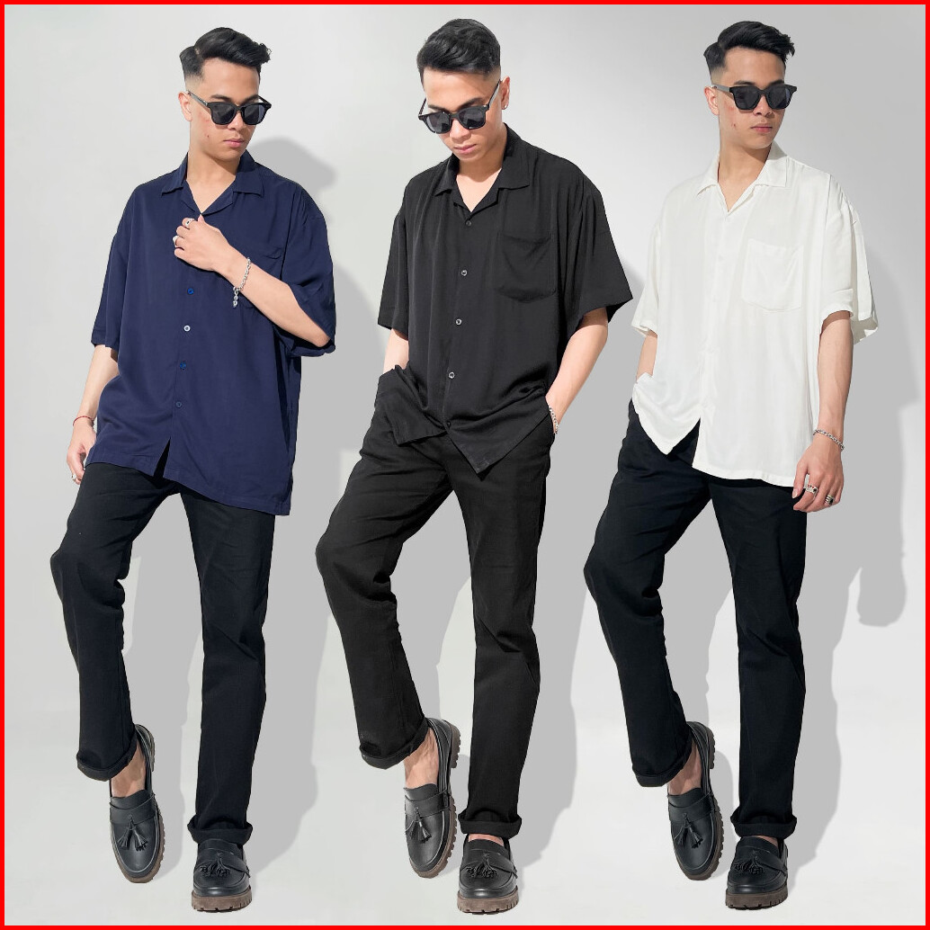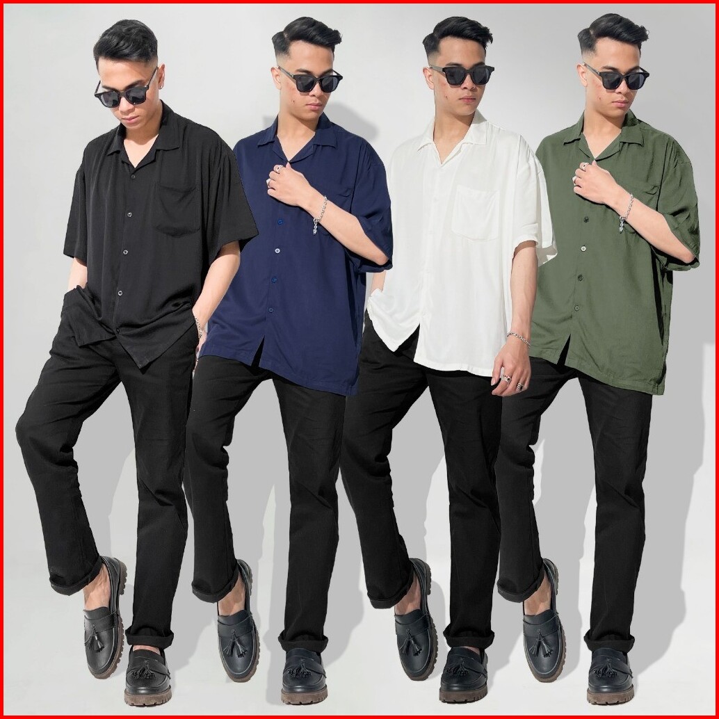 Kemeja Pendek Rayon Bowling Collar Shirt Kemeja Pendek Pria