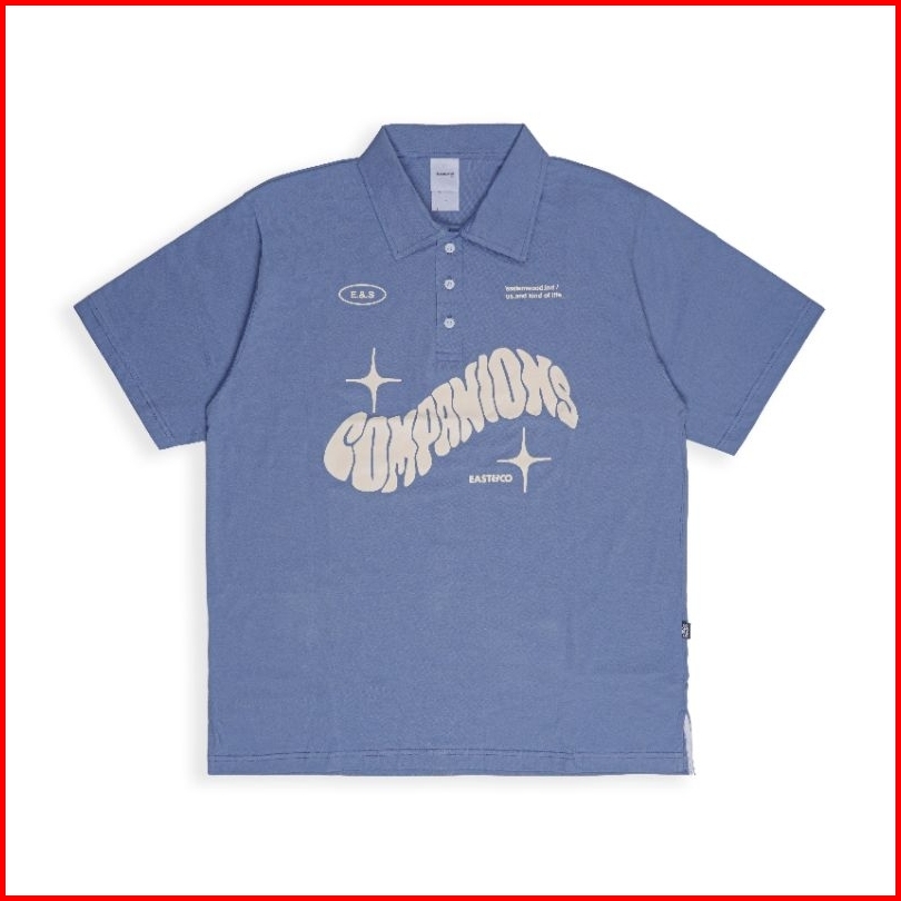 Easternwood Rugby Lengan Pendek Oversize Vintage Short Polo Shirt Blue Stones