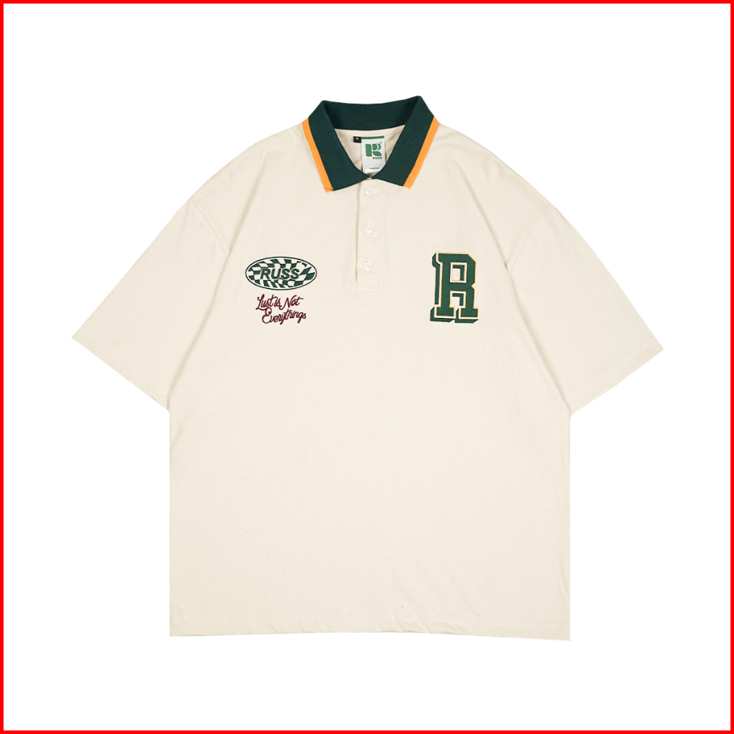 Russ Poloshirt Oversize Rugby Tangan Pendek Gainner Broken White