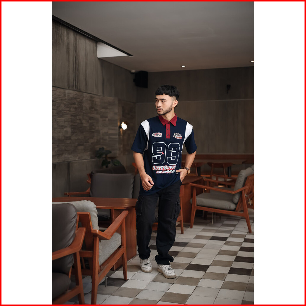 Ootdsupply Oversize Rugby Polo Shirt Springfield Combination Kaos Polo Pria Dan Wanita Ovz-psr041