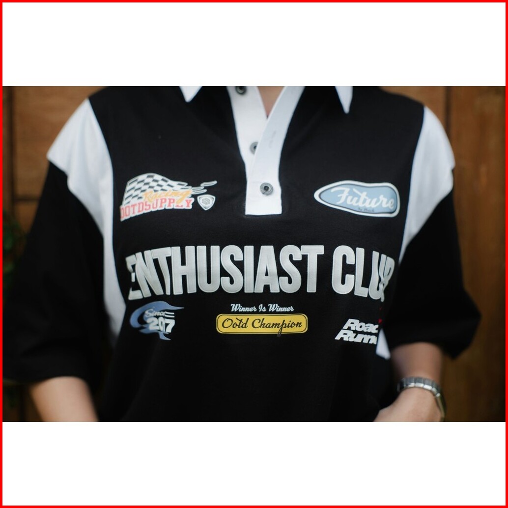 Ootdsupply Oversize Rugby Polo Shirt Ootd Runner Combination Kaos Polo Pria Dan Wanita Ovz-psr030