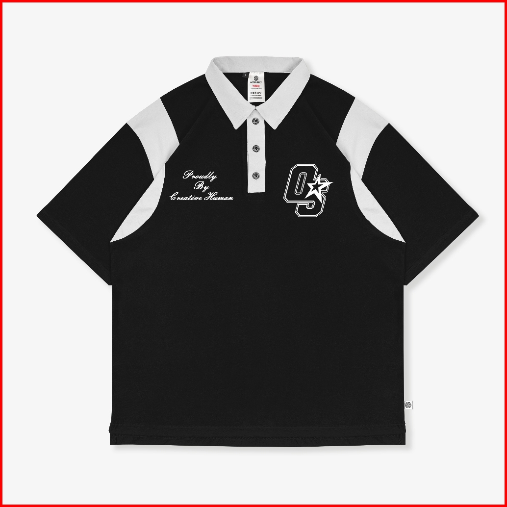 Ootdsupply Oversize Rugby Polo Shirt Os Sign Combination Kaos Polo Pria Dan Wanita Ovz-psr027