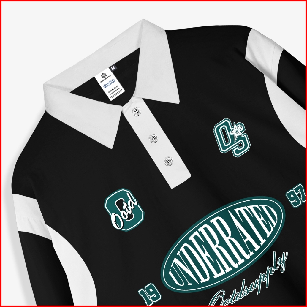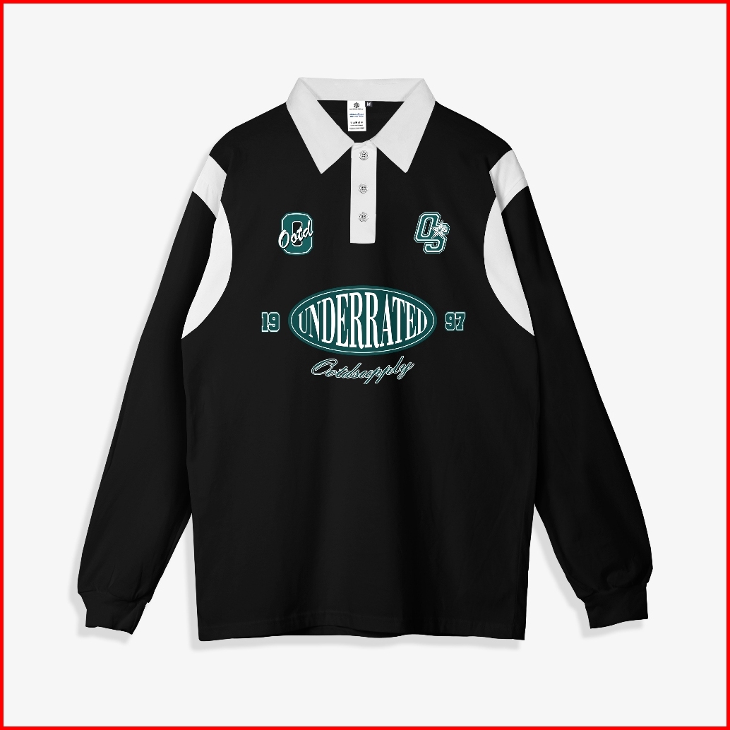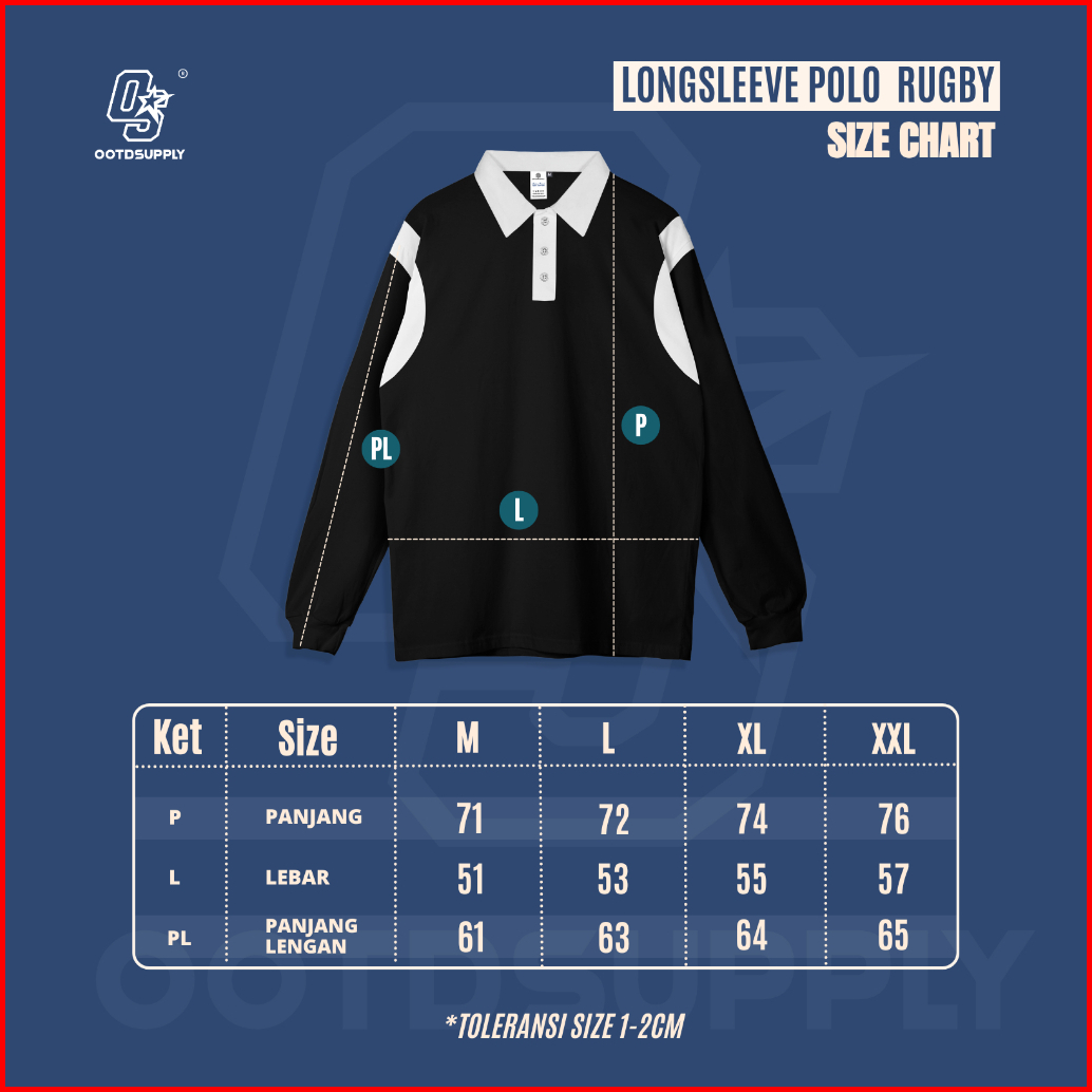 Ootdsupply Longsleeve Polo Rugby Regular Underrated Black White L Shirt Lengan Panjang L Kaos Kerah I Kaos Salur Lsrb002