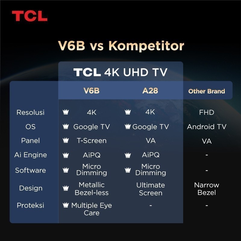 TV 50 INCH SMART TV GOOGLE ANDROID TCL 4K V6B UHD OLBY AUDIO HDR10 T SCREEN PANEL GARANSI ORIGINAL FLASH SALE