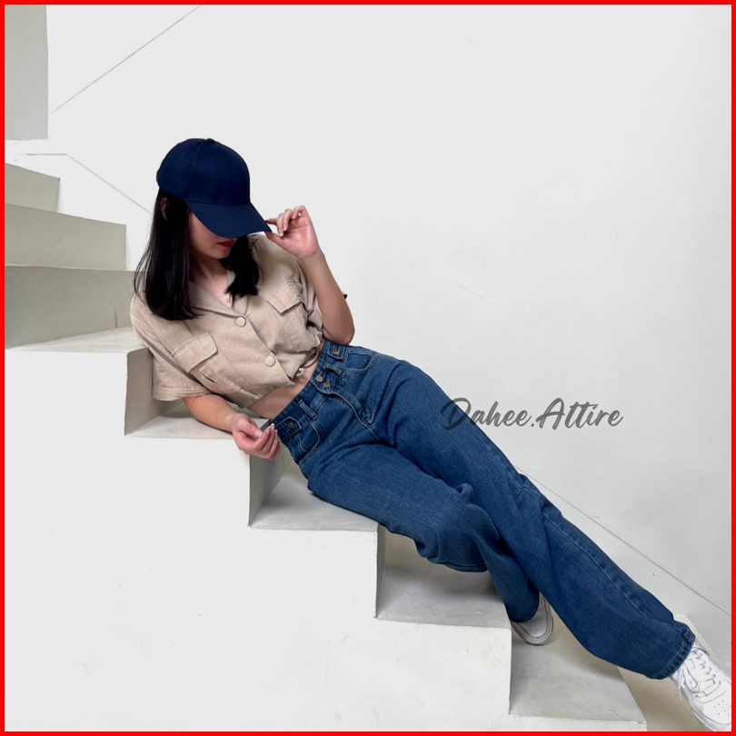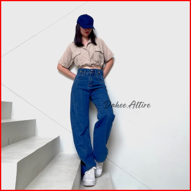 Celana Jeans Panjang Highwaist Baggy Jeans Wanita Korean Style Kekinian - Michi Jeans