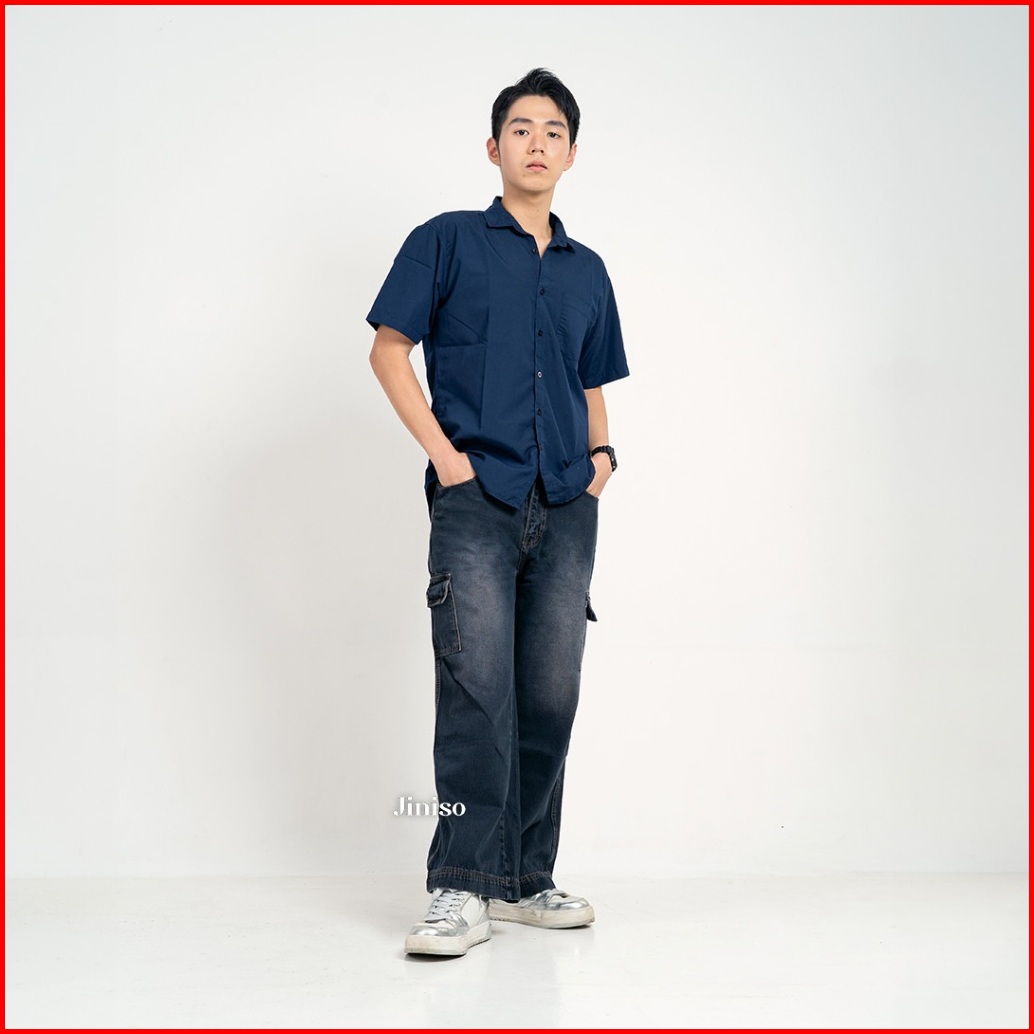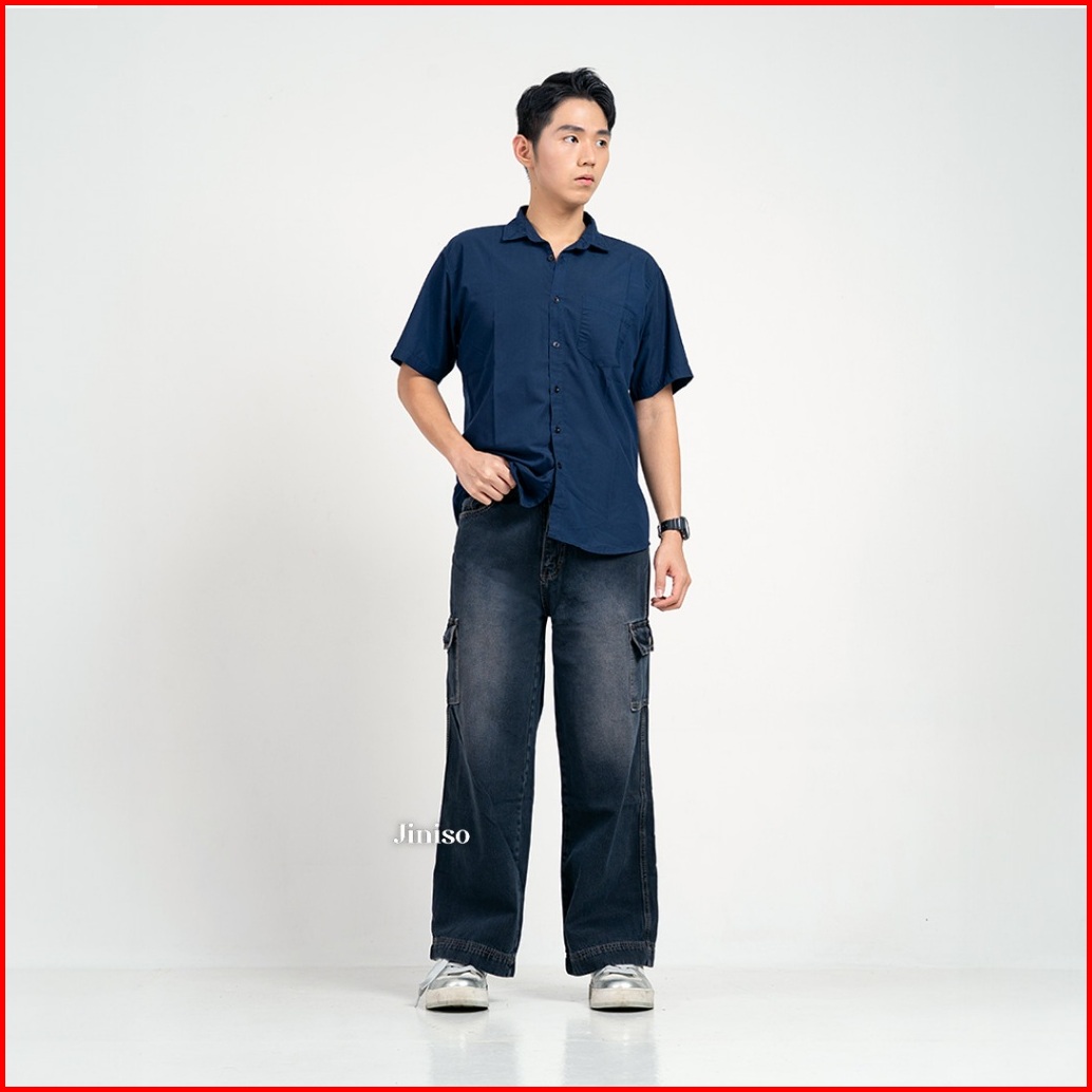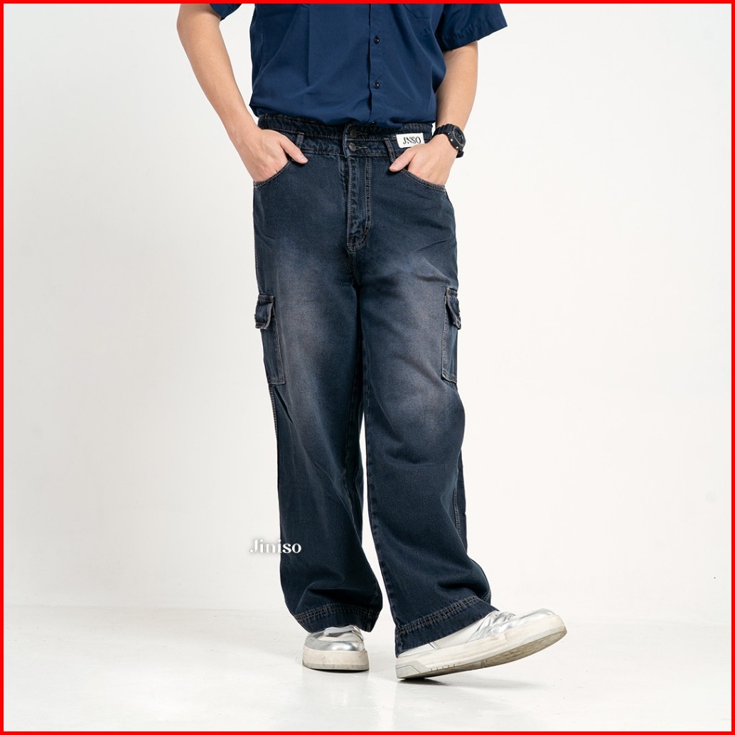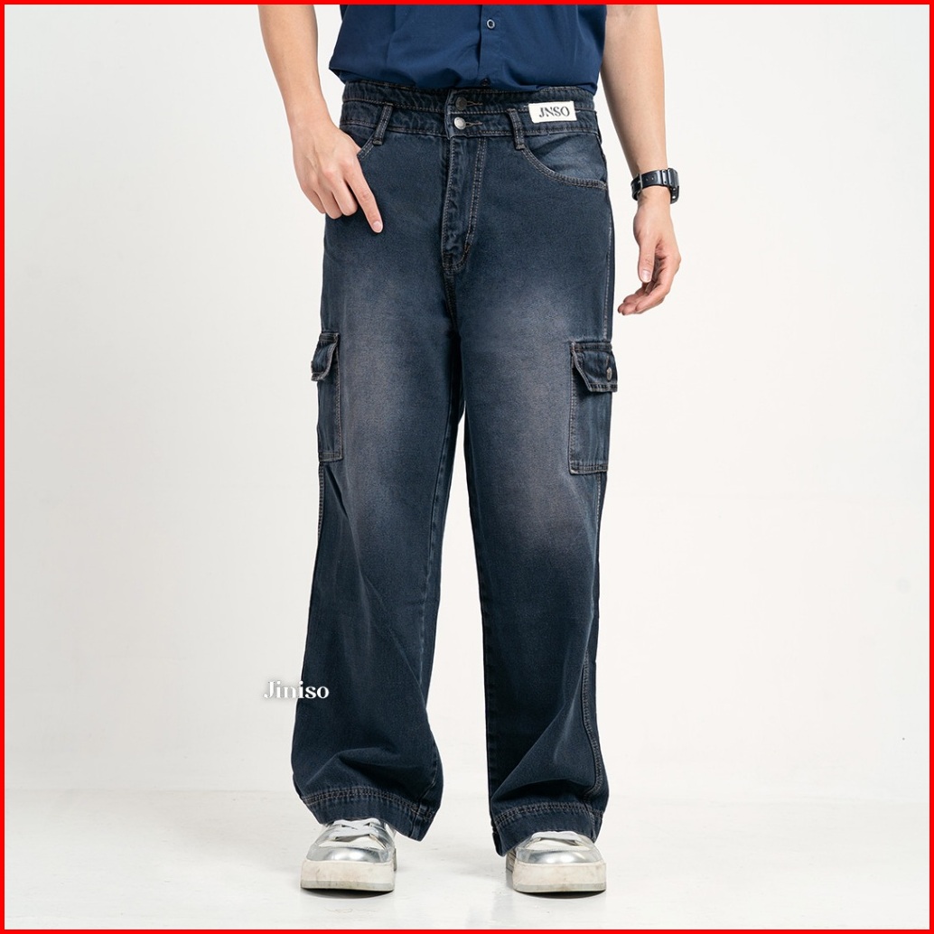 Jiniso Loose Cargo Denim Jeans Pria 463