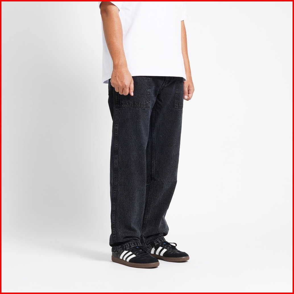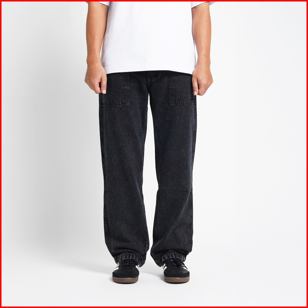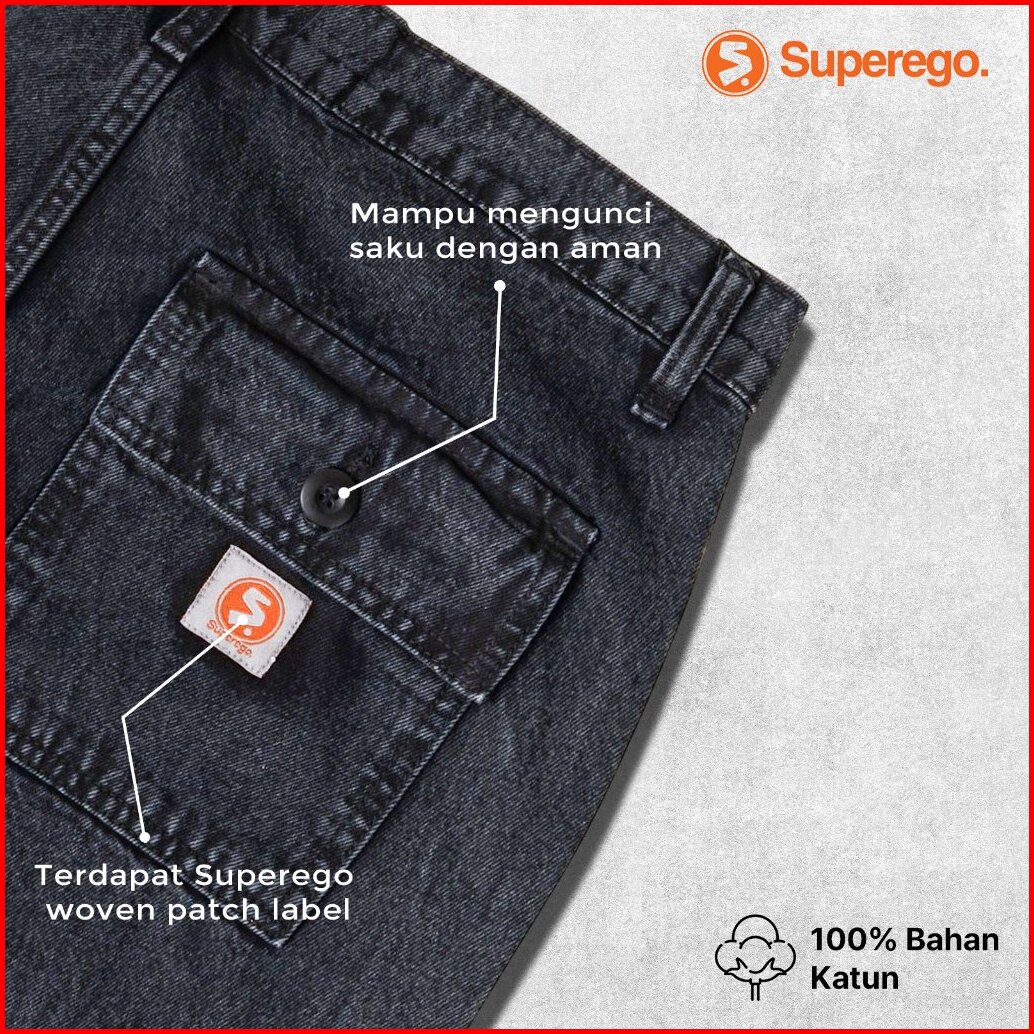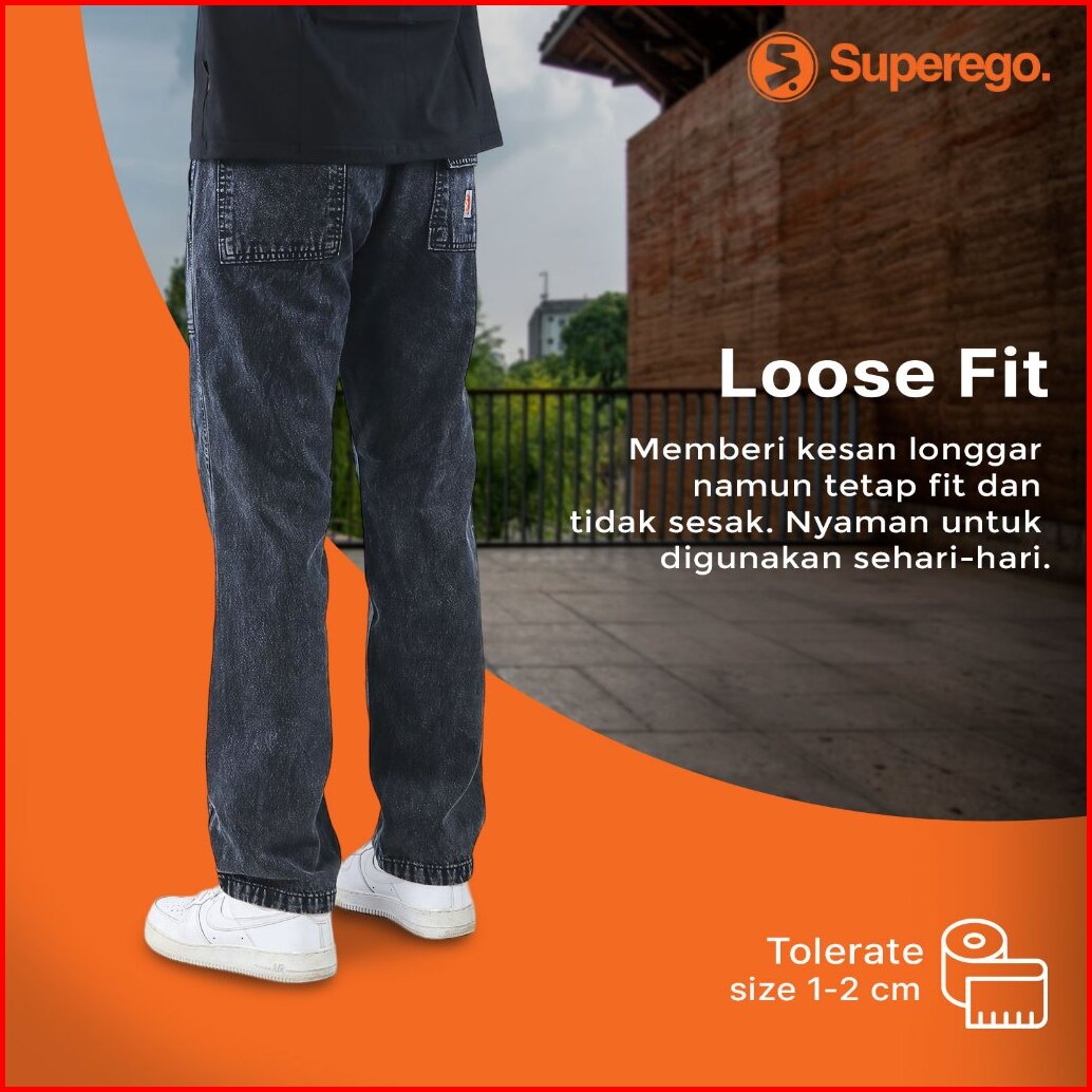 Superego Celana Jeans Pria Size 28-38 Loose Fit Fatigue Long Pants Denim Snow Black Sfp01e