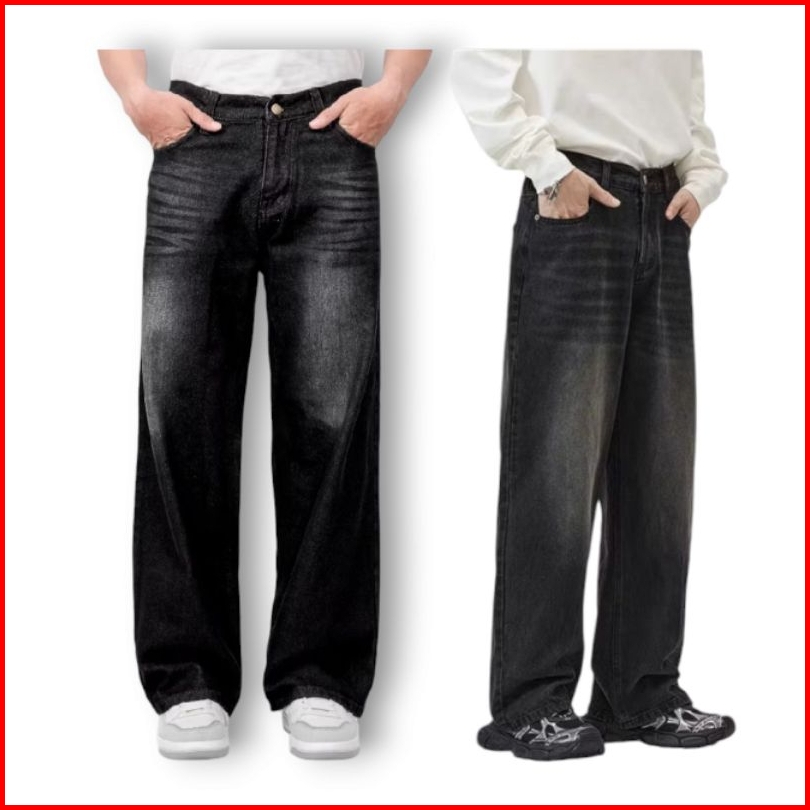Loose Jeans Reguler Celana Jeans Pria Panjang Gombrong Unisex Baggy Loose Oversize Vintage Celana Jeans Pria Panjang Bah