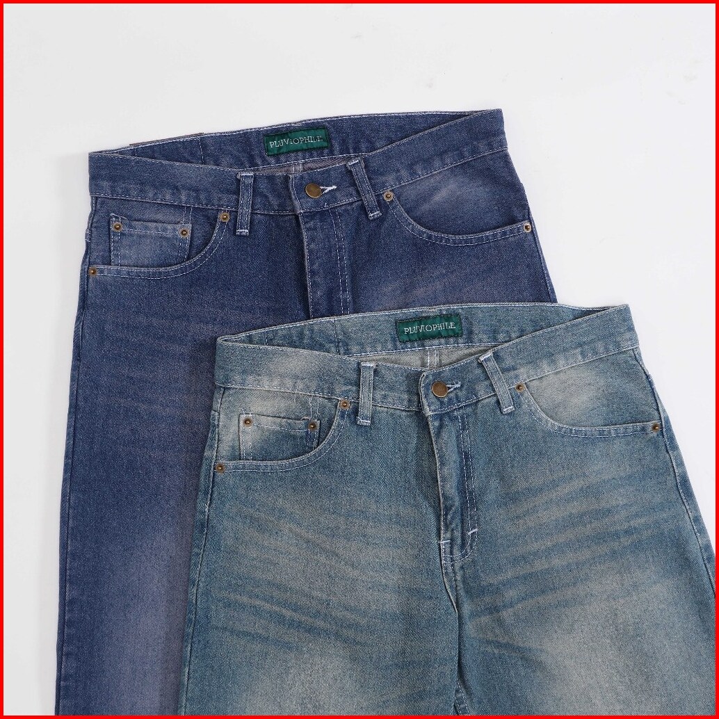 Pluviophile - Celana Jeans Wide Leg Gombrong Wisker Blue Think