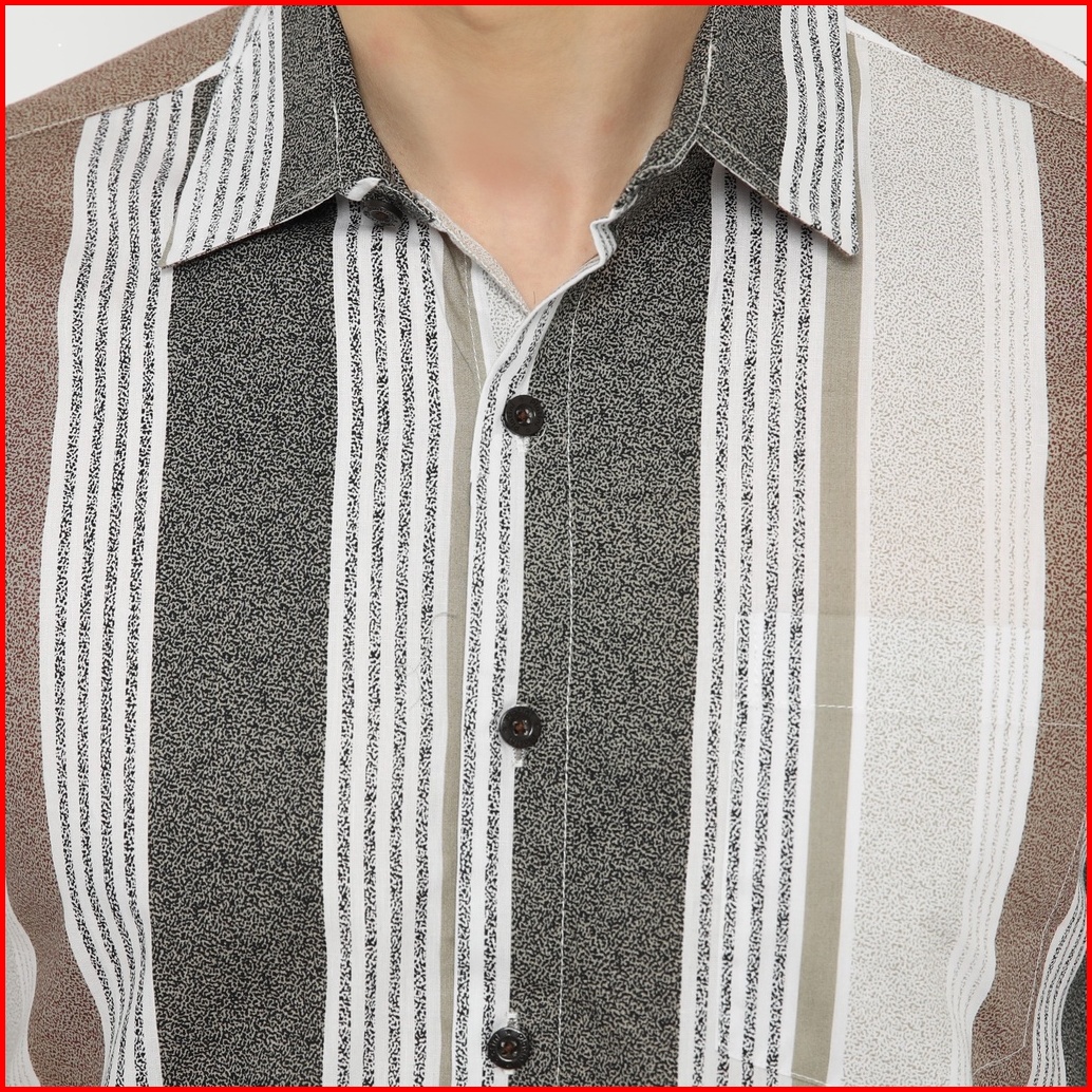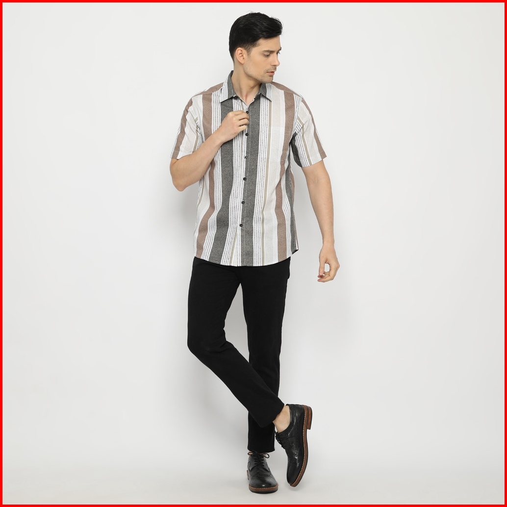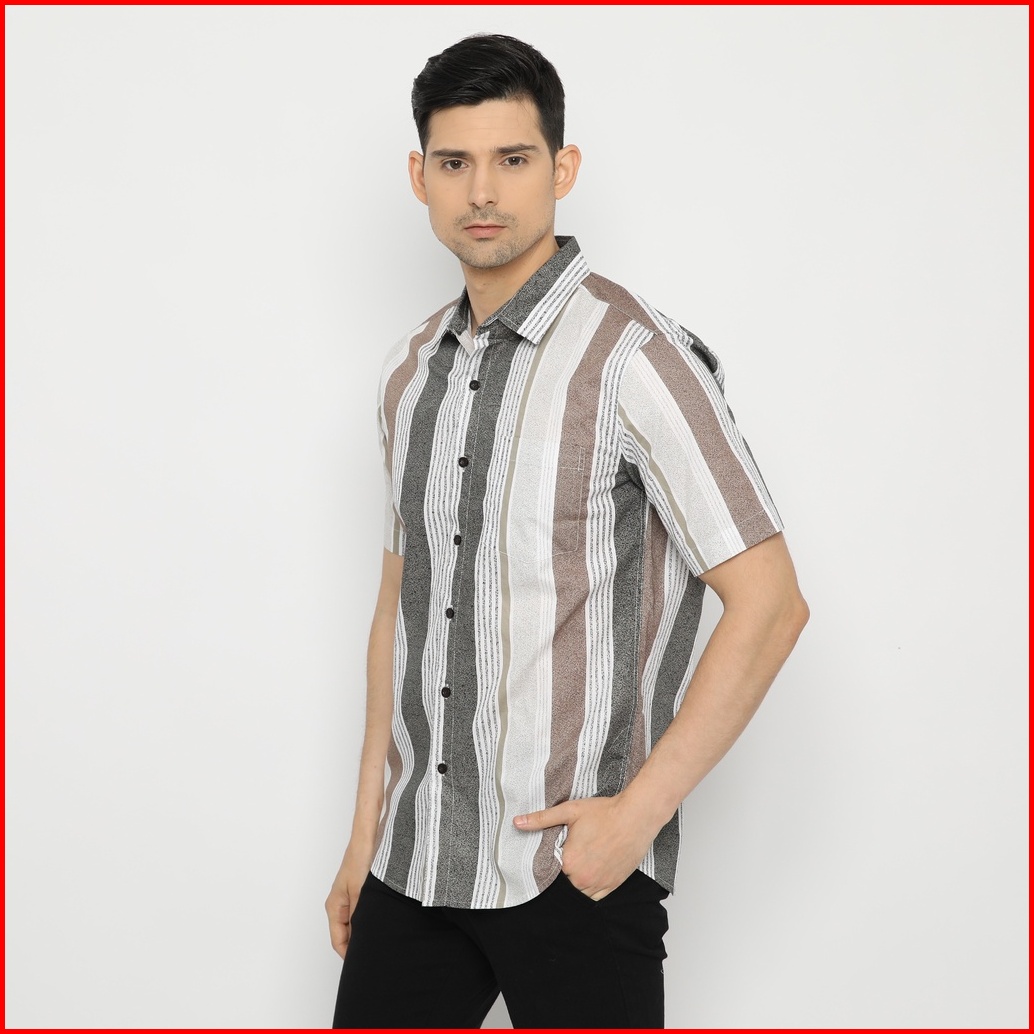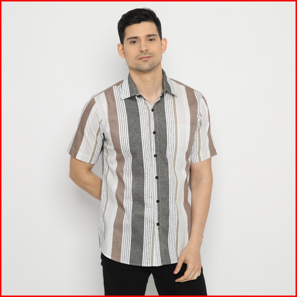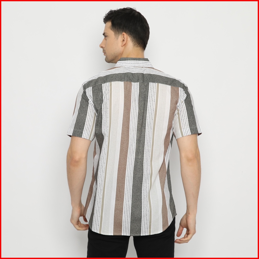 Platini Kemeja Motif Salur Pria Lengan Pendek Katun Print Coklat 73298