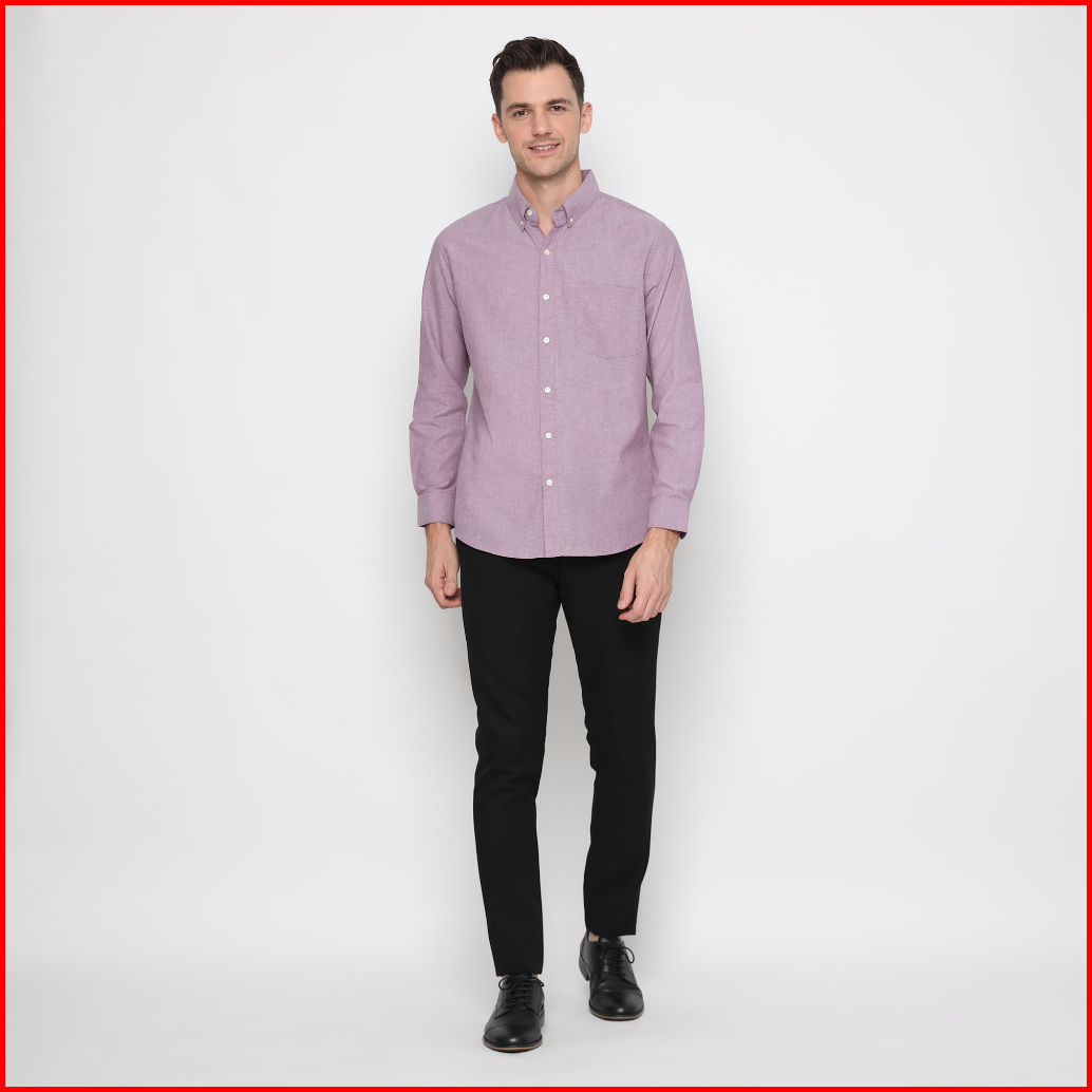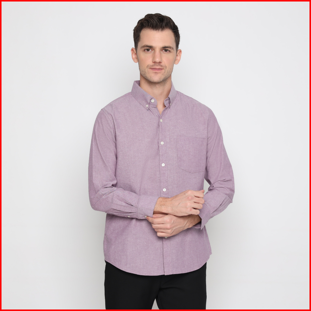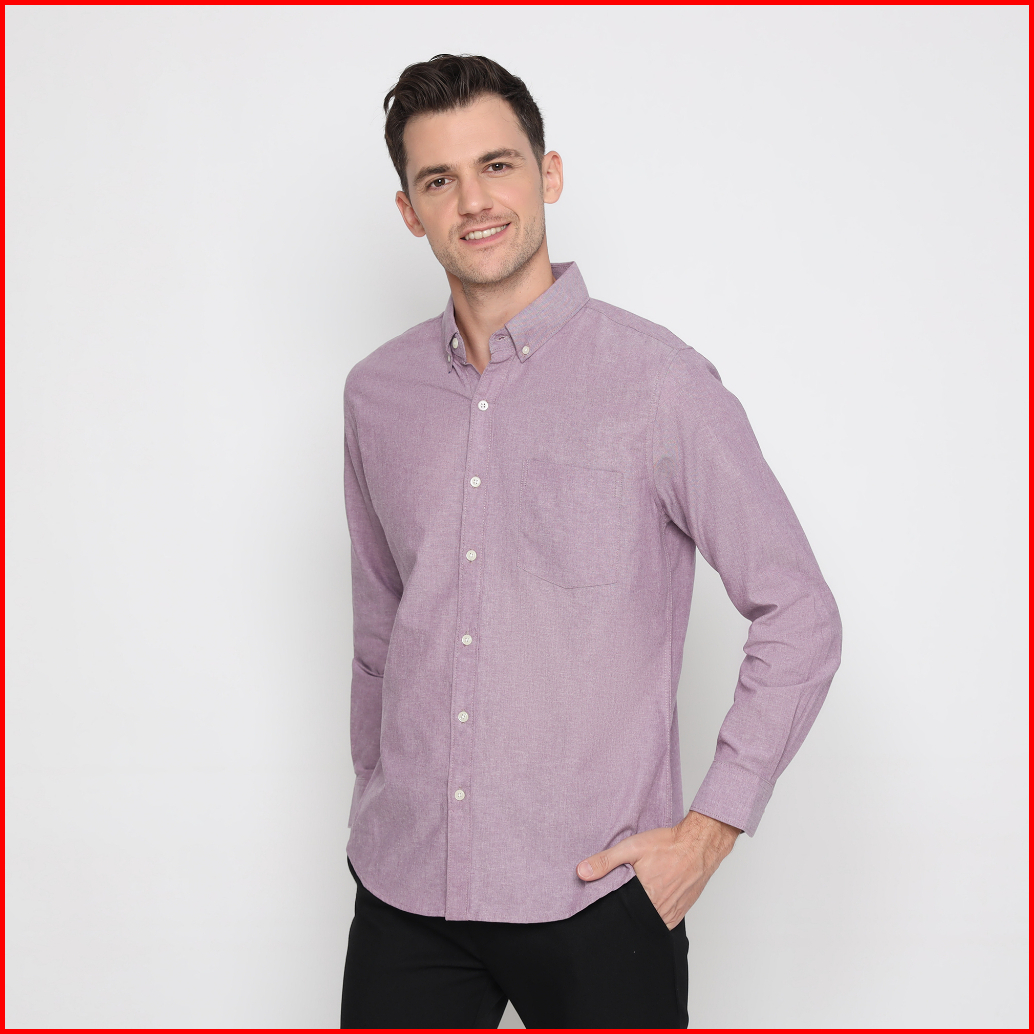 Platini Kemeja Pria Polos Lengan Panjang Katun Oxford Ungu 11069