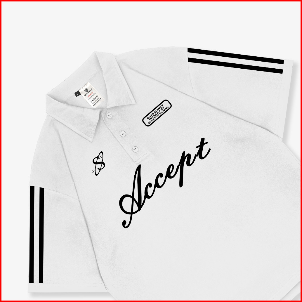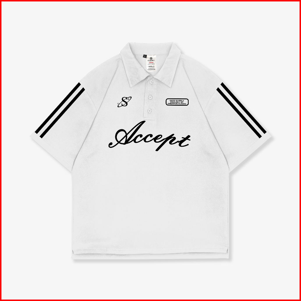 Ootdsupply Oversize Polo Shirt Accept Line White Black L Kaos Oversize Pria Dan Wanita Ovz-ps003