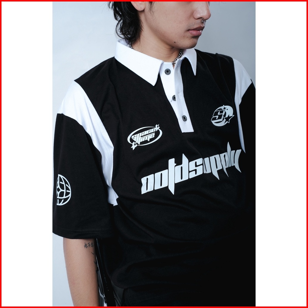 Ootdsupply Oversize Rugby Polo Shirt Space Time Combination Kaos Polo Pria Dan Wanita Ovz-psr028