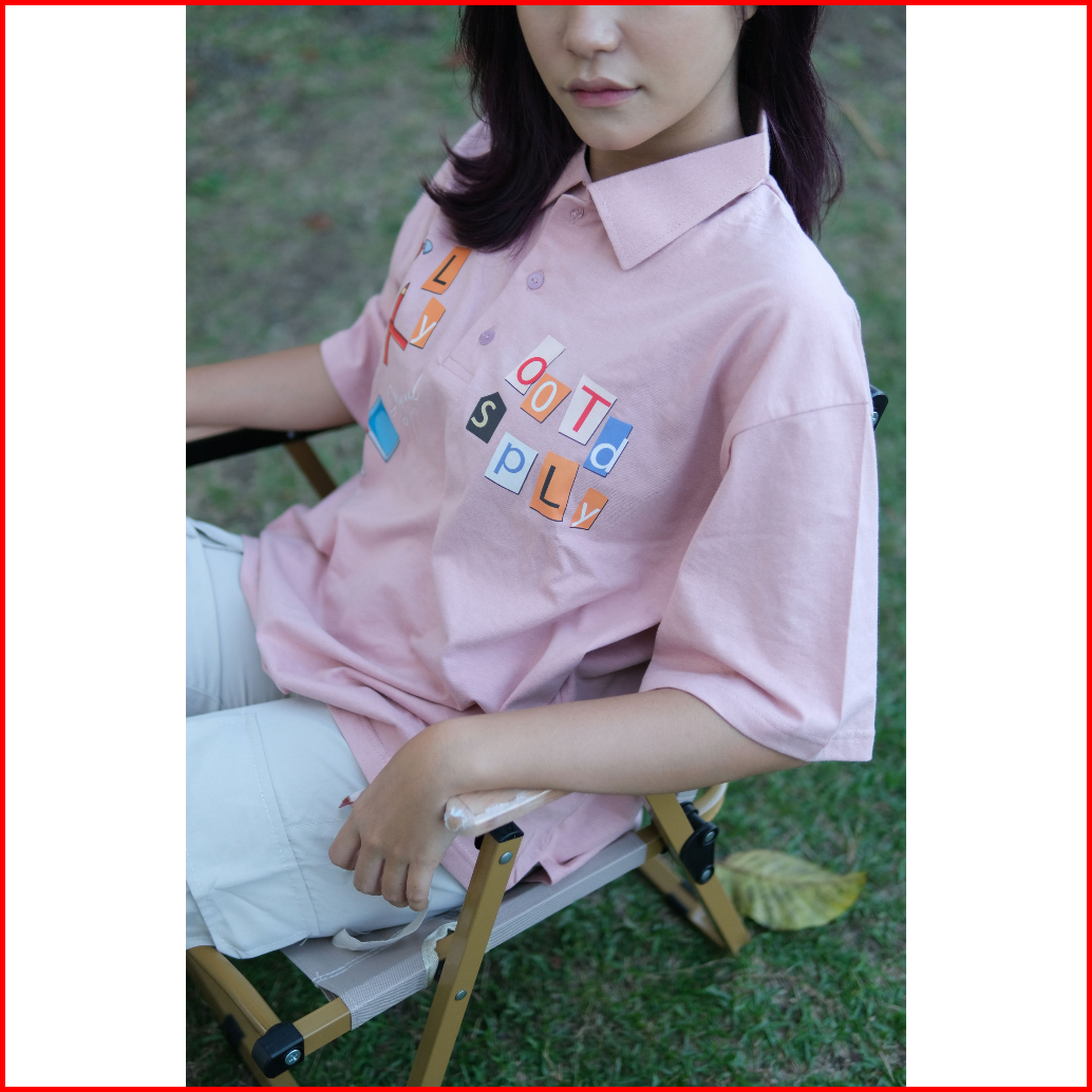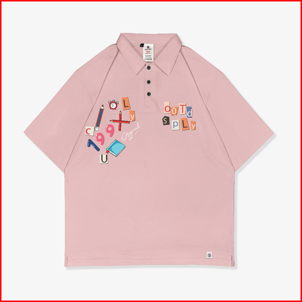 Ootdsupply Oversize Polo Shirt Pencil Dusty Pink Black L Kaos Oversize Pria Dan Wanita Ovz-ps005