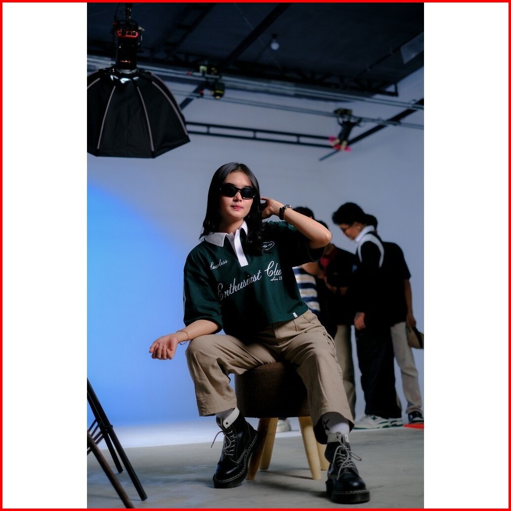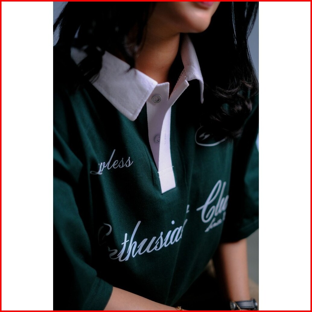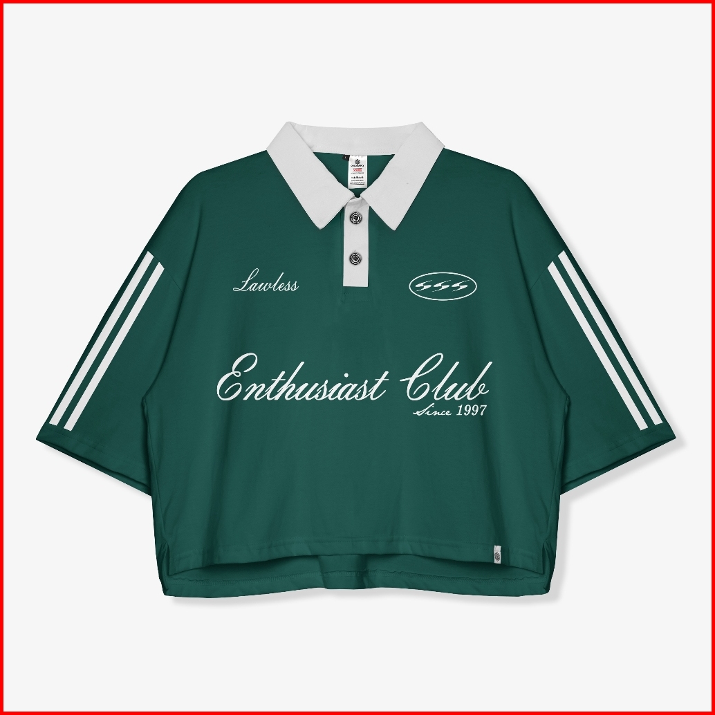 Ootdsupply Oversize Polo Crop Shirt Enthusiast Club Dark Army White Collar L Polo Crop Pria Dan Wanita Ovz-cps005