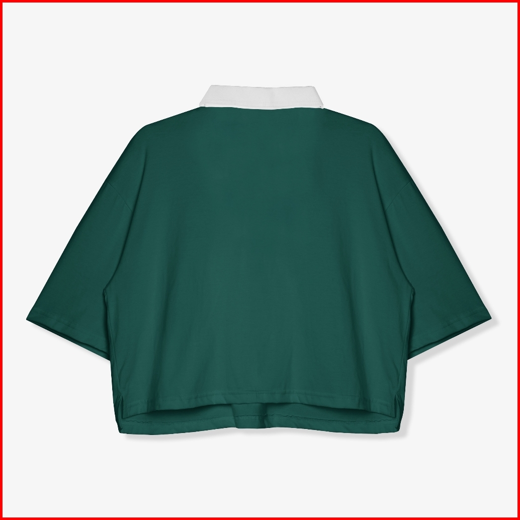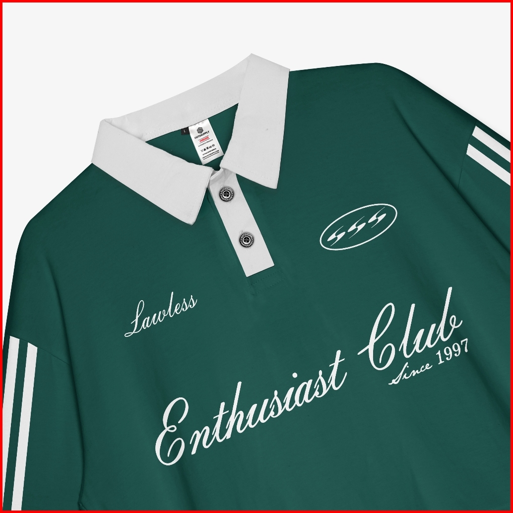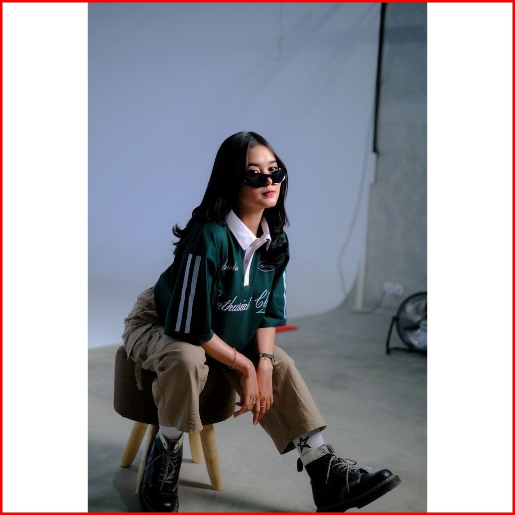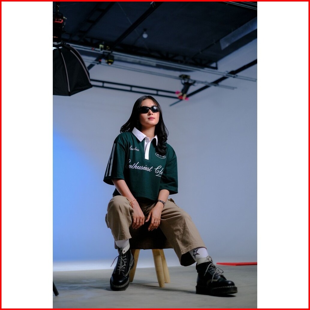 Ootdsupply Oversize Polo Crop Shirt Enthusiast Club Dark Army White Collar L Polo Crop Pria Dan Wanita Ovz-cps005