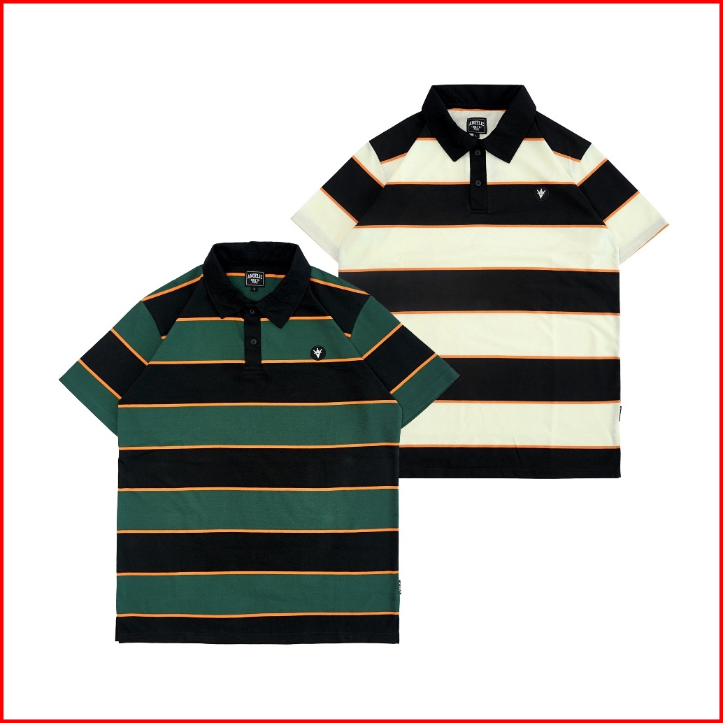 Angelic Holynpure - Polo Shirt Rugby Pendek Salur Cotton 24s - 3 Warna