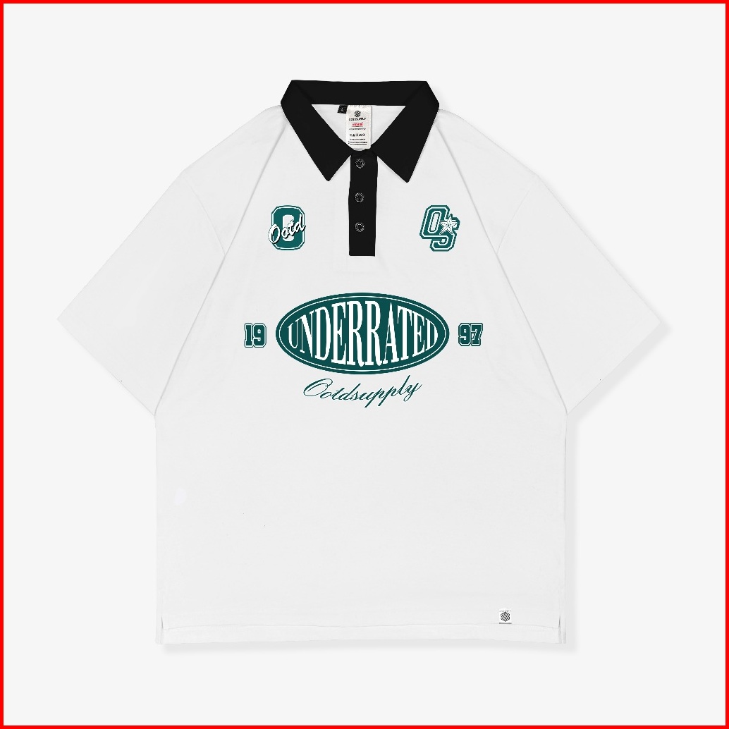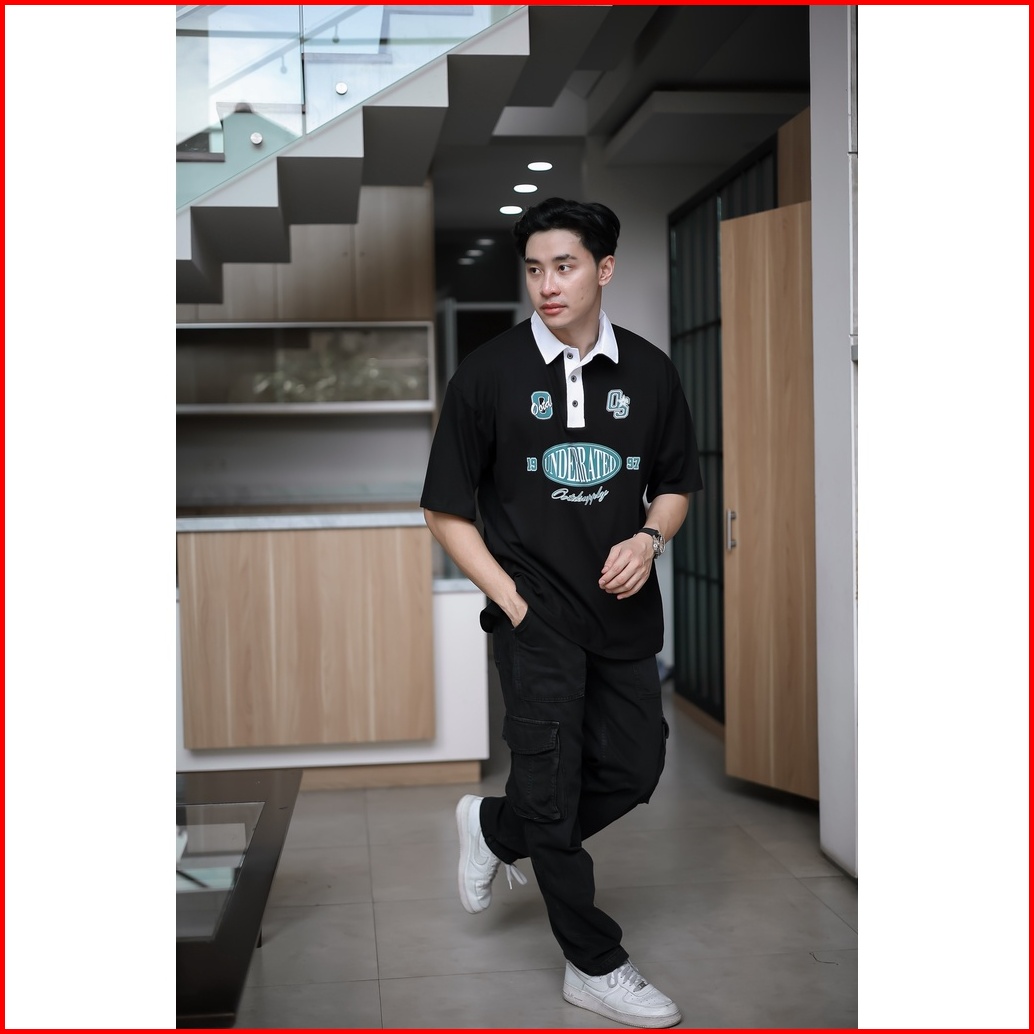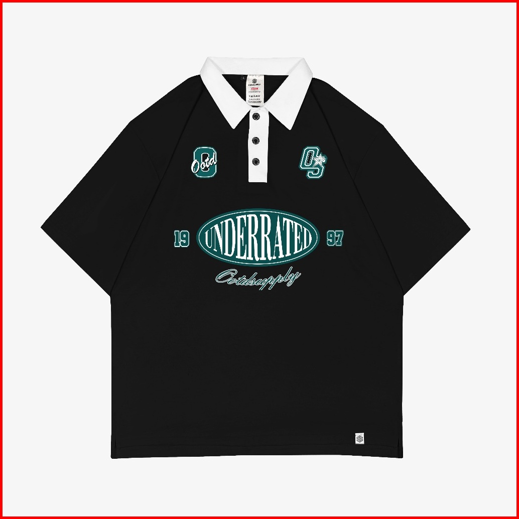 Ootdsupply Oversize Polo Shirt Underrated Black White Collar L Kaos Polo Pria Dan Wanita Ovz-ps013
