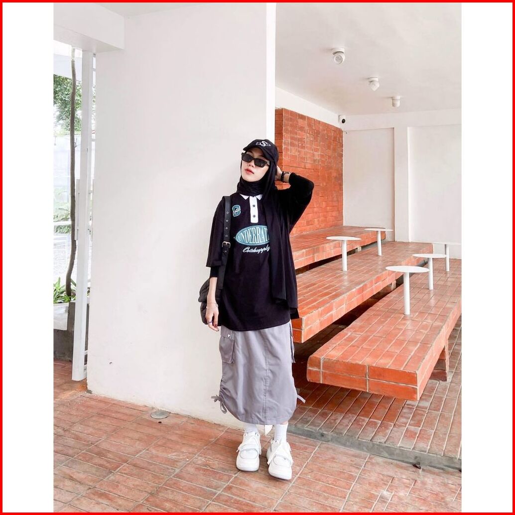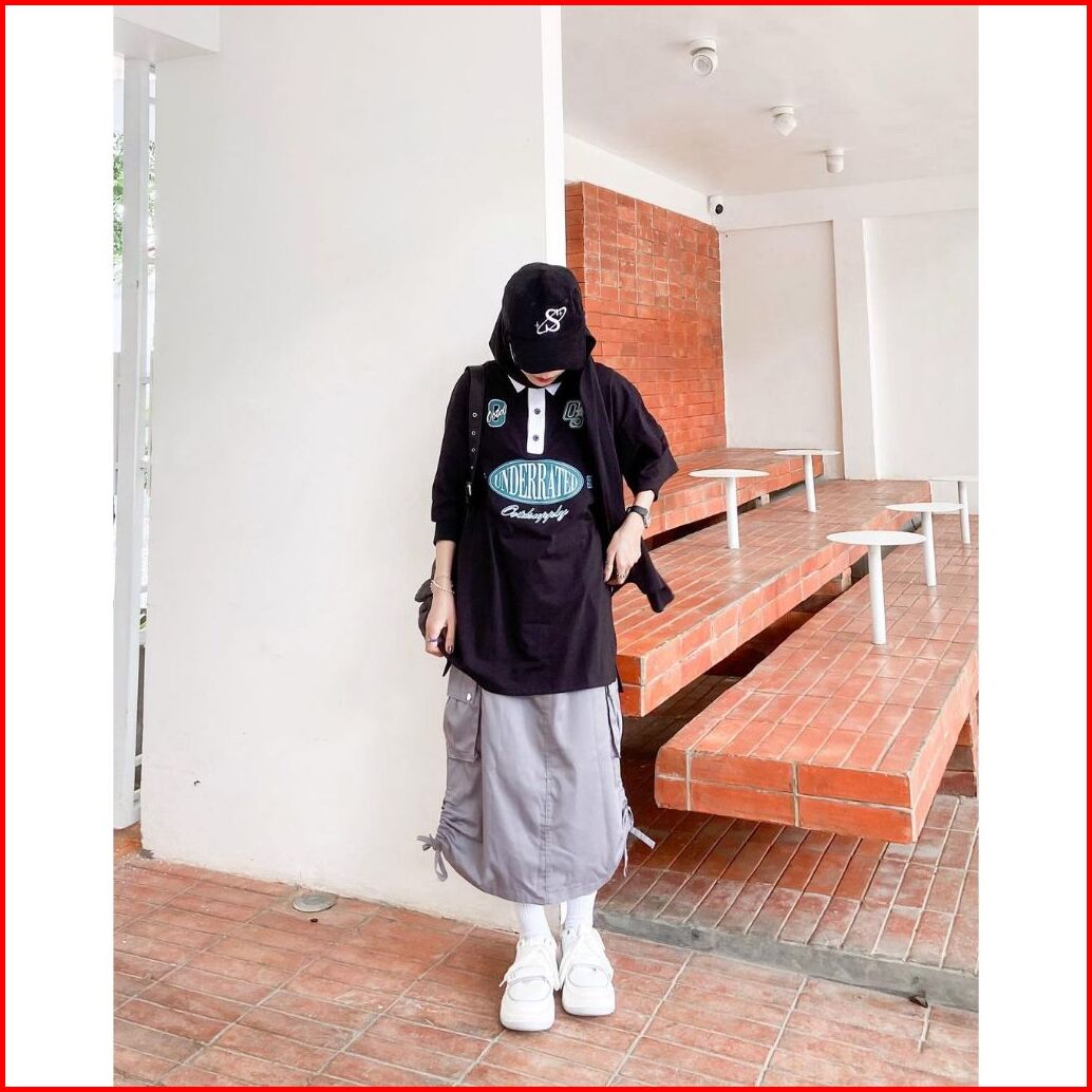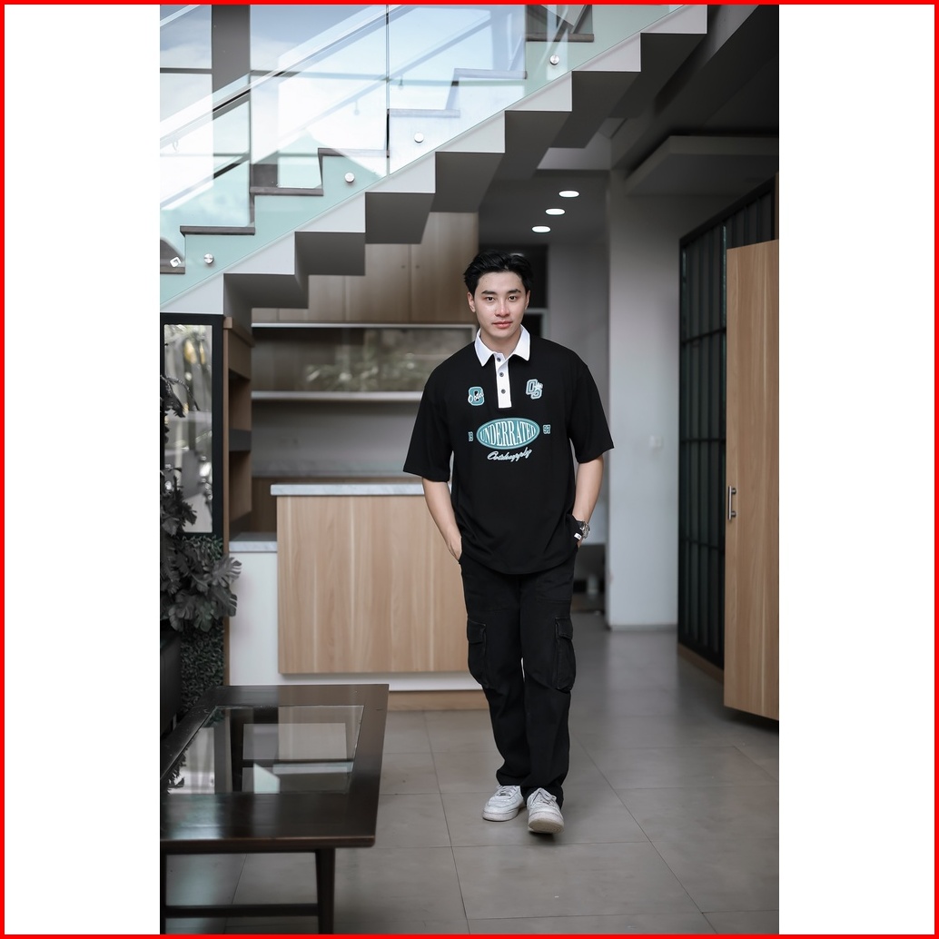 Ootdsupply Oversize Polo Shirt Underrated Black White Collar L Kaos Polo Pria Dan Wanita Ovz-ps013