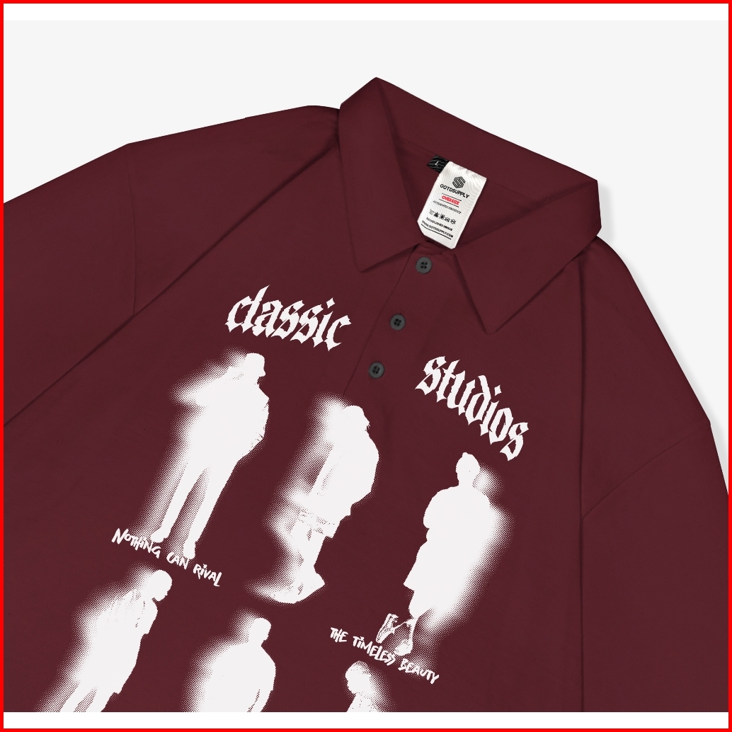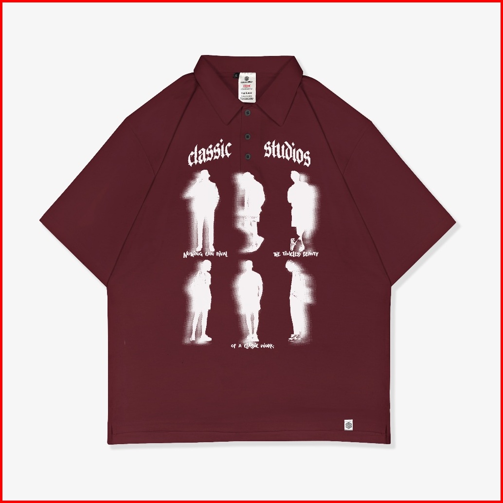 Ootdsupply Oversize Polo Shirt The Studios Maroon Black L Kaos Polo Pria Dan Wanita Ovz-ps038