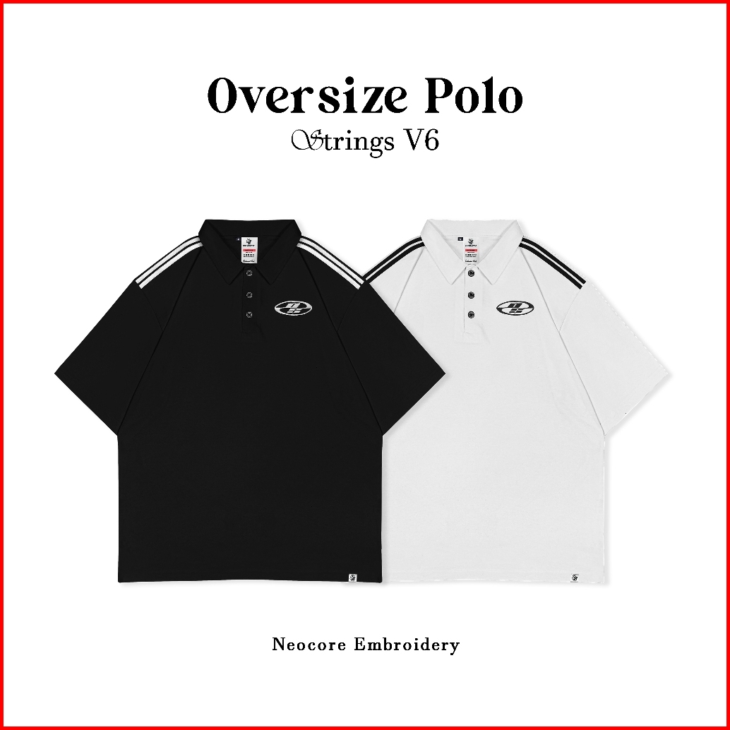 Ootdsupply Oversize Polo Shirt Strings V.6 Neocore Embroidery Black L Kaos Oversize Atasan Pria Dan Wanita Psstringv6ne