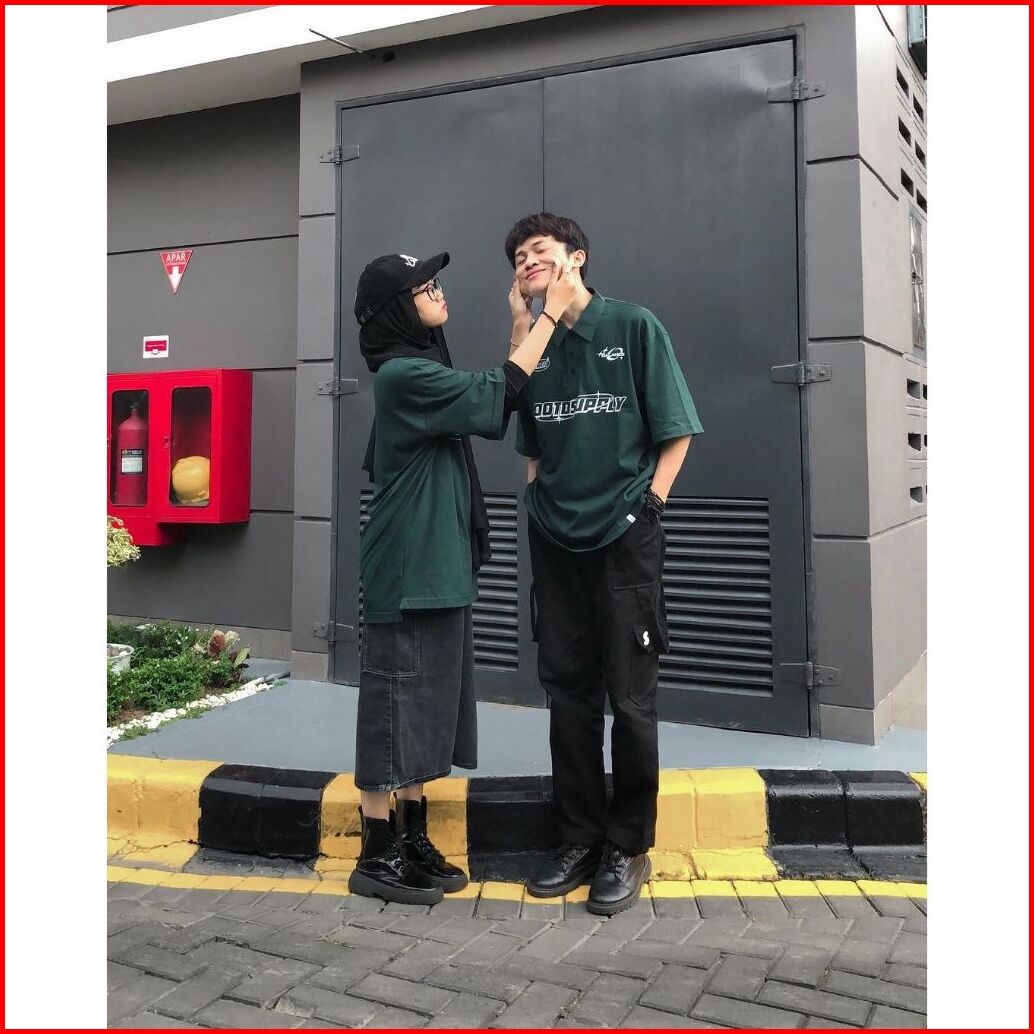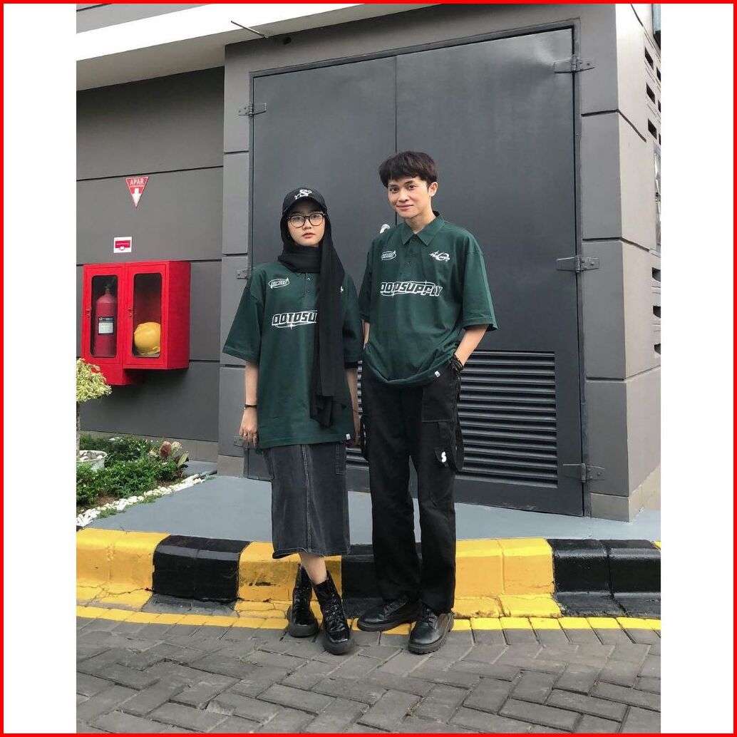 Ootdsupply Oversize Polo Shirt Balence Dark Army L Kaos Polo Pria Dan Wanita Ovz-ps007
