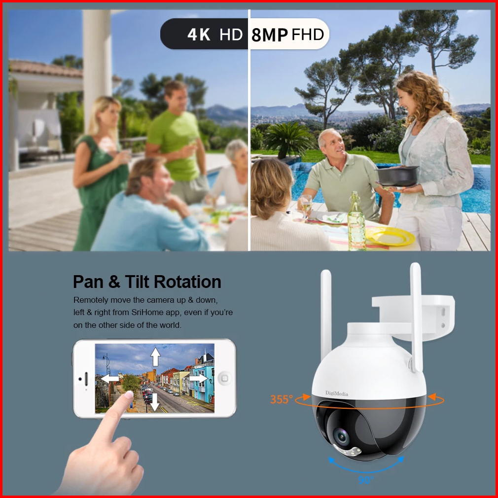 Coddigimedia H08 Cctv Outdoor Luar Ruangan 8mp Super Jernih Wifi Ip66 Tahan Air Super Night Vision Smart Camera Ptz 360