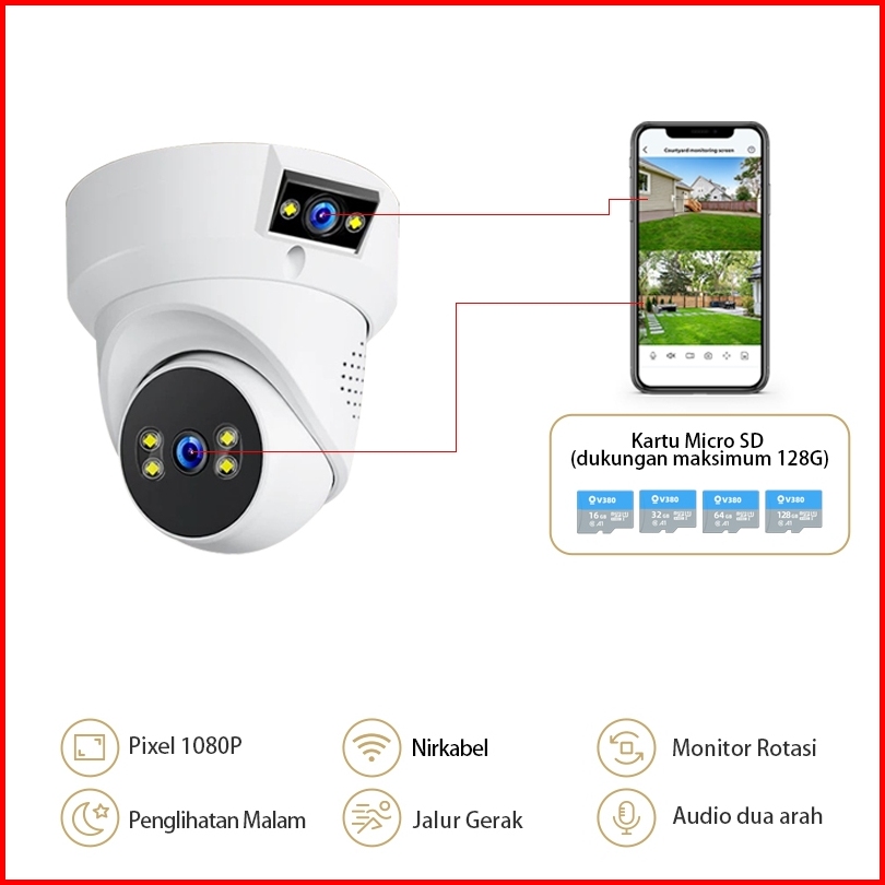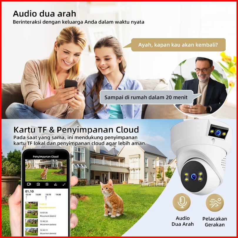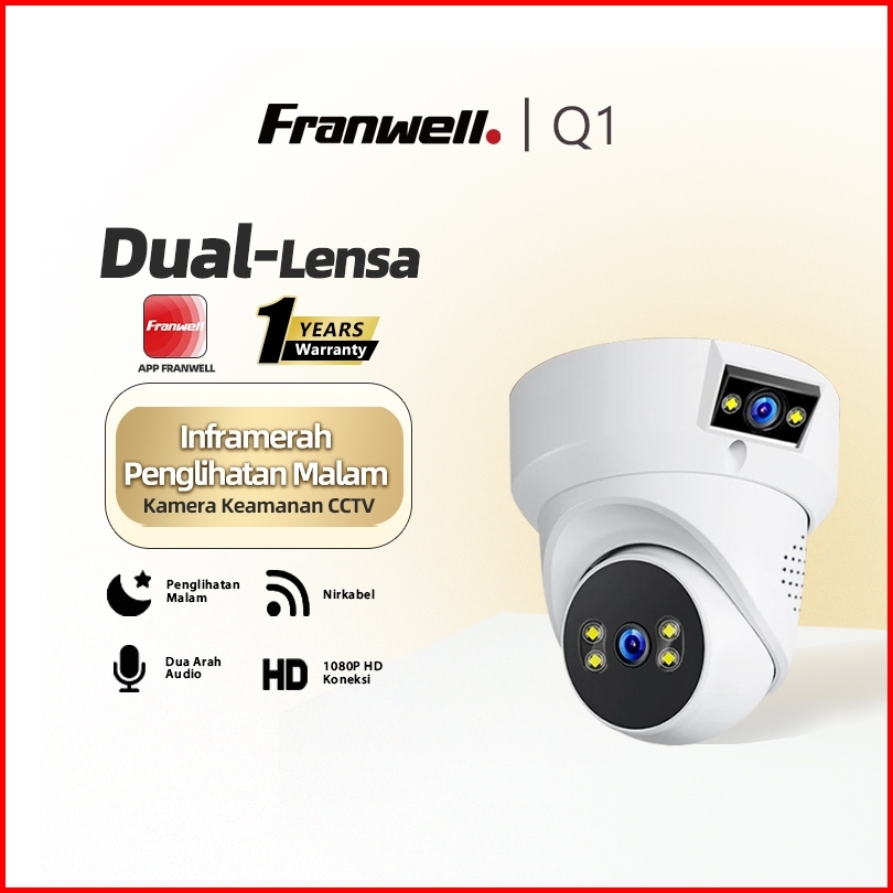 Franwell Q1 Kamera Cctv Wifi Dual Lensa 1080p Night Vision Pantau Anak Rumah Audio 2 Arah