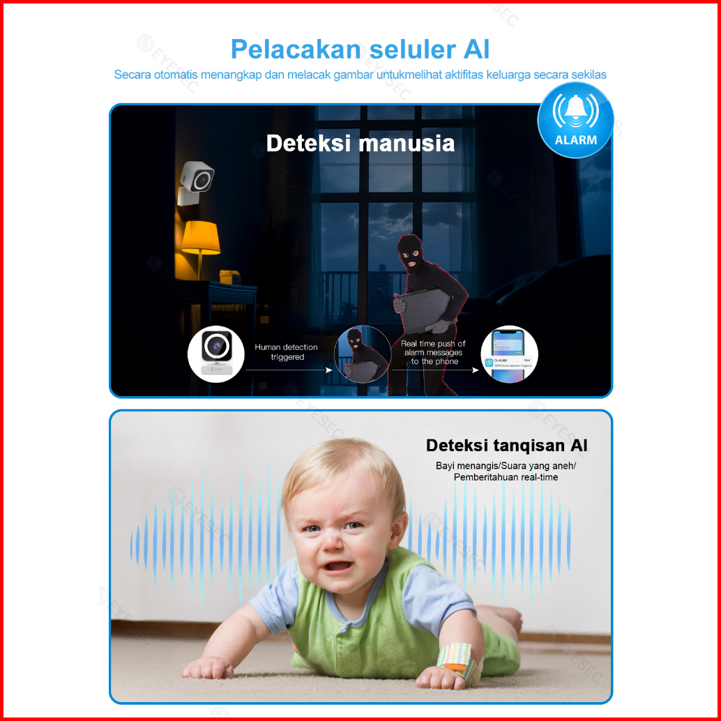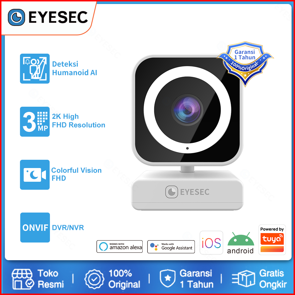 2025 Eyesec Es0w66 Cctv 3mp Wide-angle Wireless Wifi Smart Ip Camera Indoor Ai Pendeteksi Manusia Garansi 1 Tahun